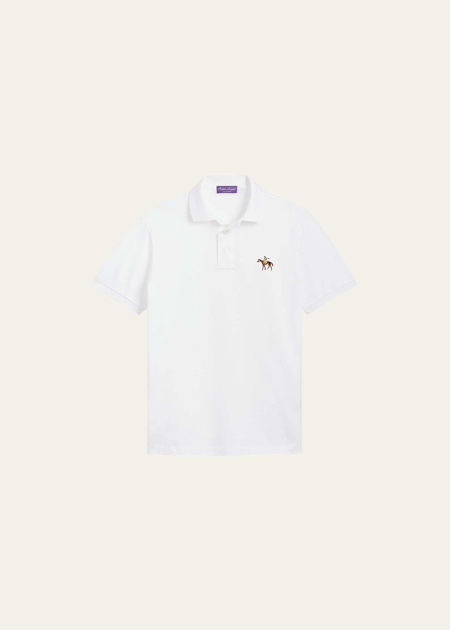 Ralph Lauren Purple Label polo shirt with an embroidered logo at chest Spread collar; three-button placket Cuffed short sleeves Pullover style Cotton Made in Portugal