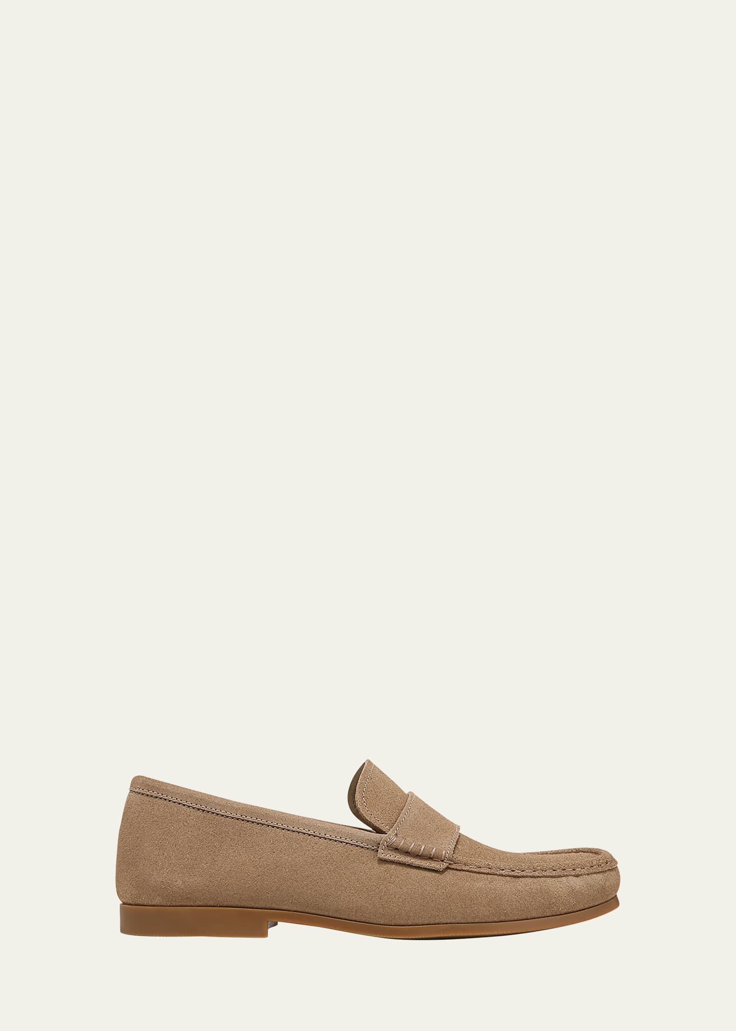 Vince "Daly" leather penny loafers with tonal topstitching Stacked heel Round moc toe Keeper strap at vamp Leather lining Slip-on style Imported