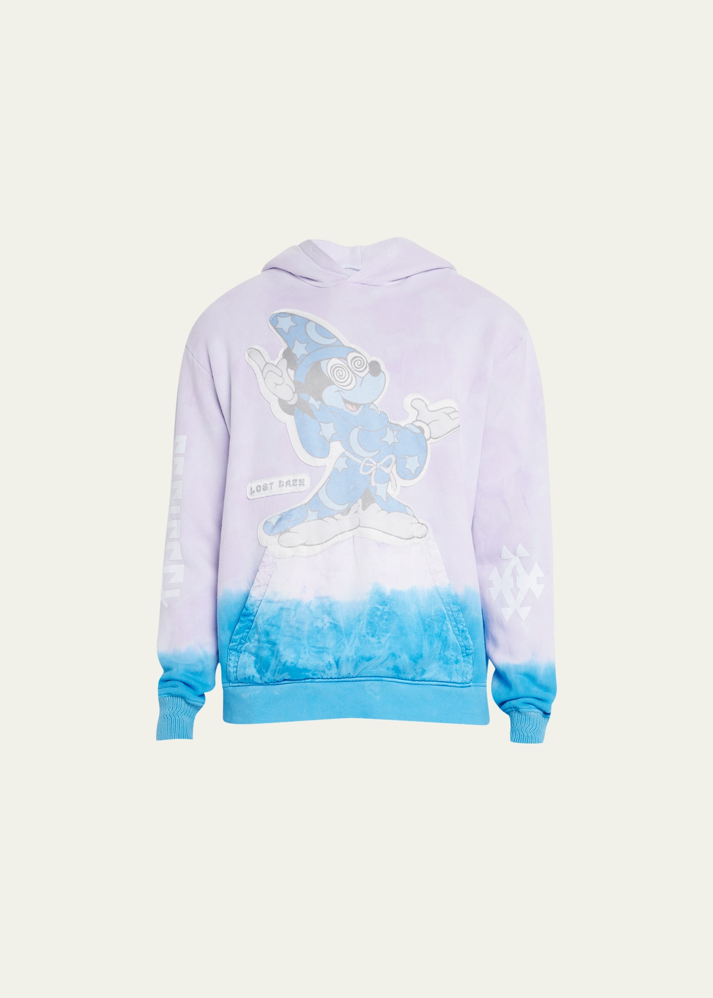Lost Daze "Shaman" dégradé sweatshirt with graphic appliqué at front Hooded neckline Pouch pocket Long sleeves Banded cuffs and hem Pullover style Cotton Made in USA