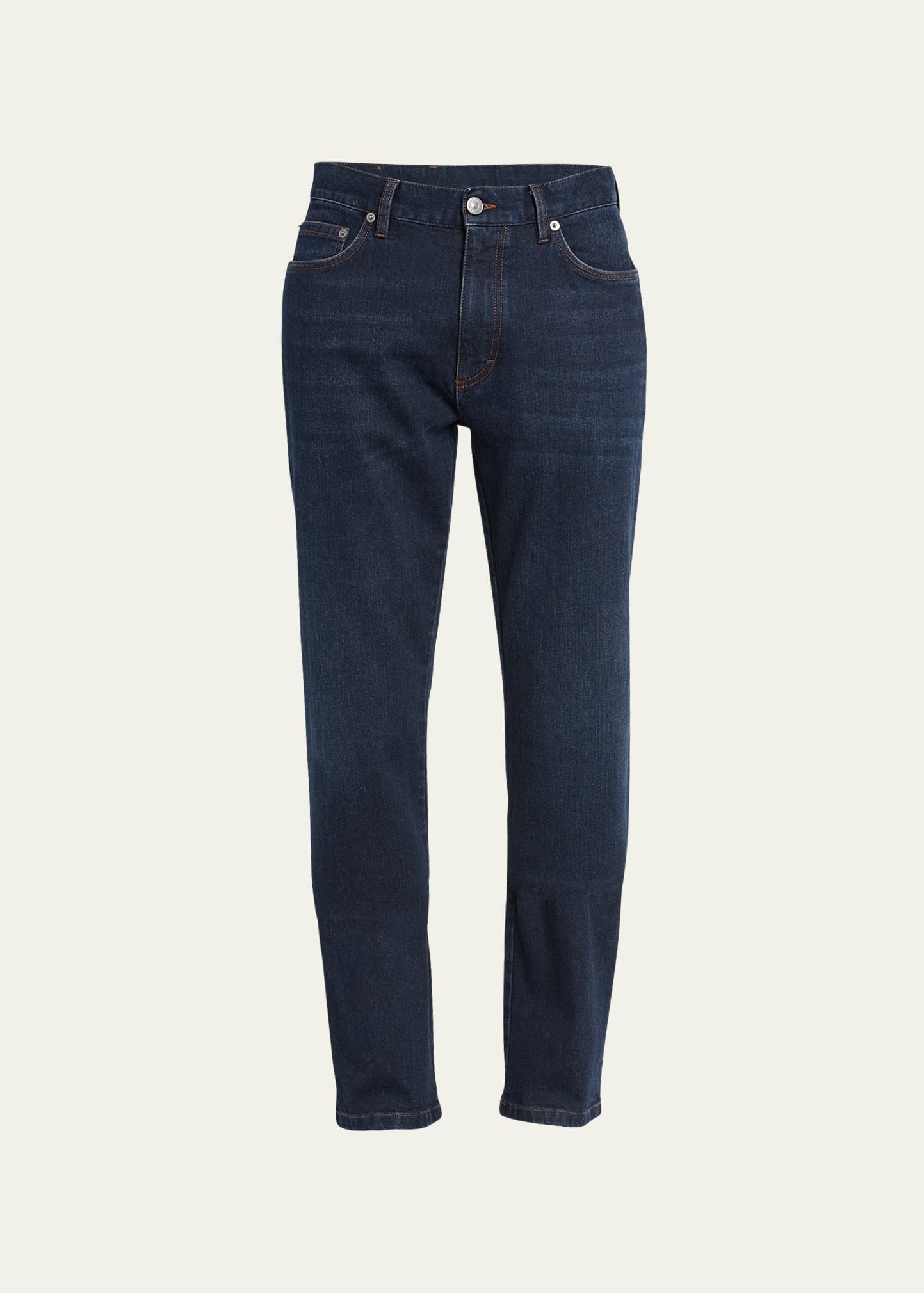 ZEGNA jeans with a classic five-pocket style Button-zip front; belt loops Regular rise; flat front Straight legs Logo patch at back Full length Classic fit Cotton/elastane Cotton/polyester lining Dry clean Leather trim Made in Italy