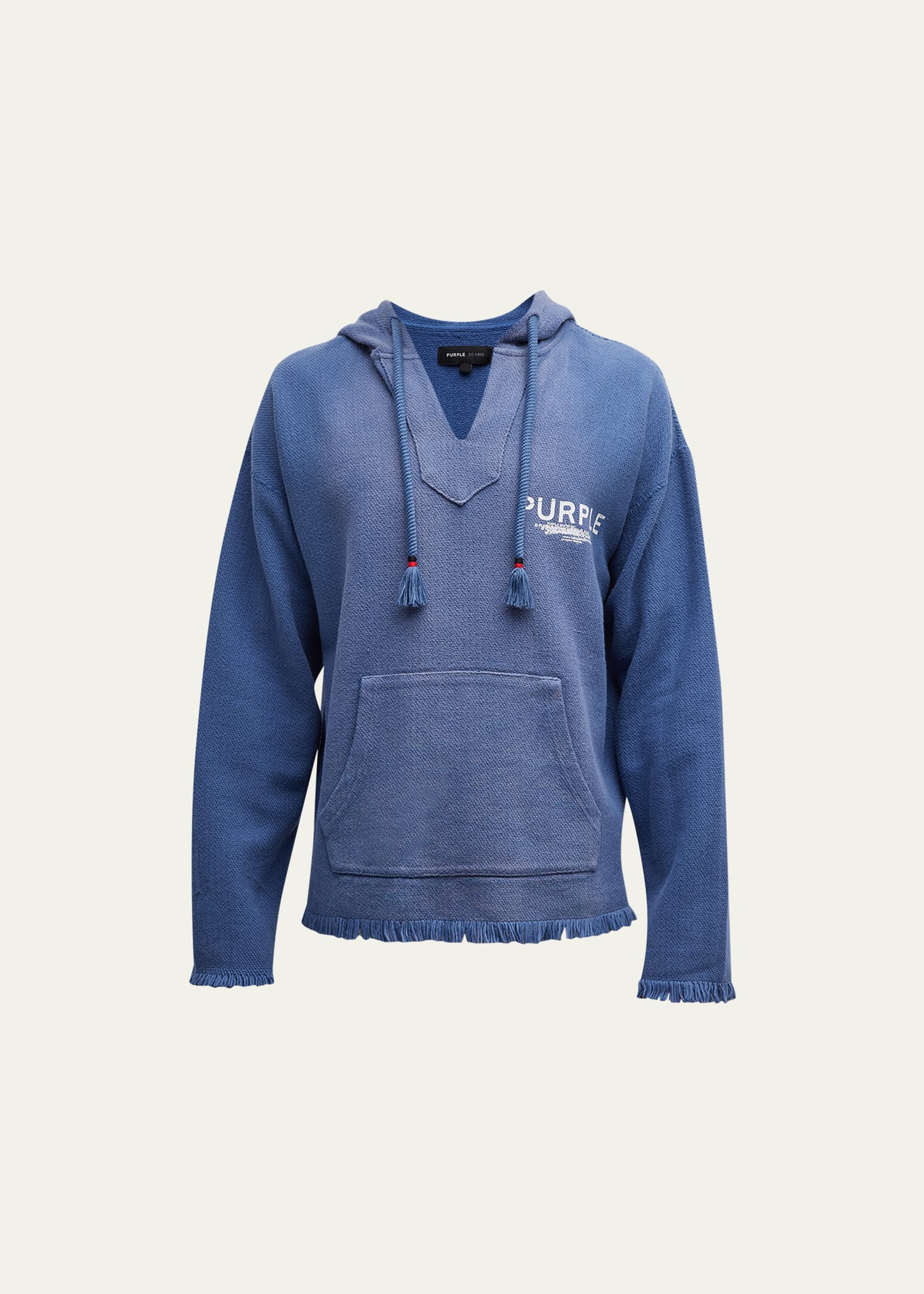 PURPLE beach hoodie featuring fringe tringe and heavy fading Drawstring hood V neckline Logo print at chest Pouch pocket Long sleeves Pullover style Cotton Imported