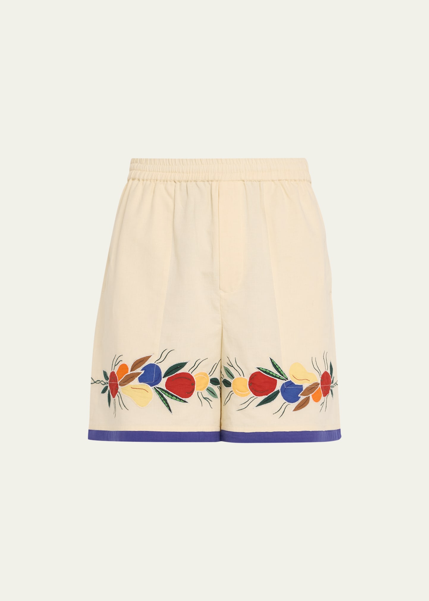 Bode shorts with fruit bunch appliqué detail Elasticized waist Side seam pockets Back welt pocket Relaxed legs Pull-on style Cotton/linen Imported