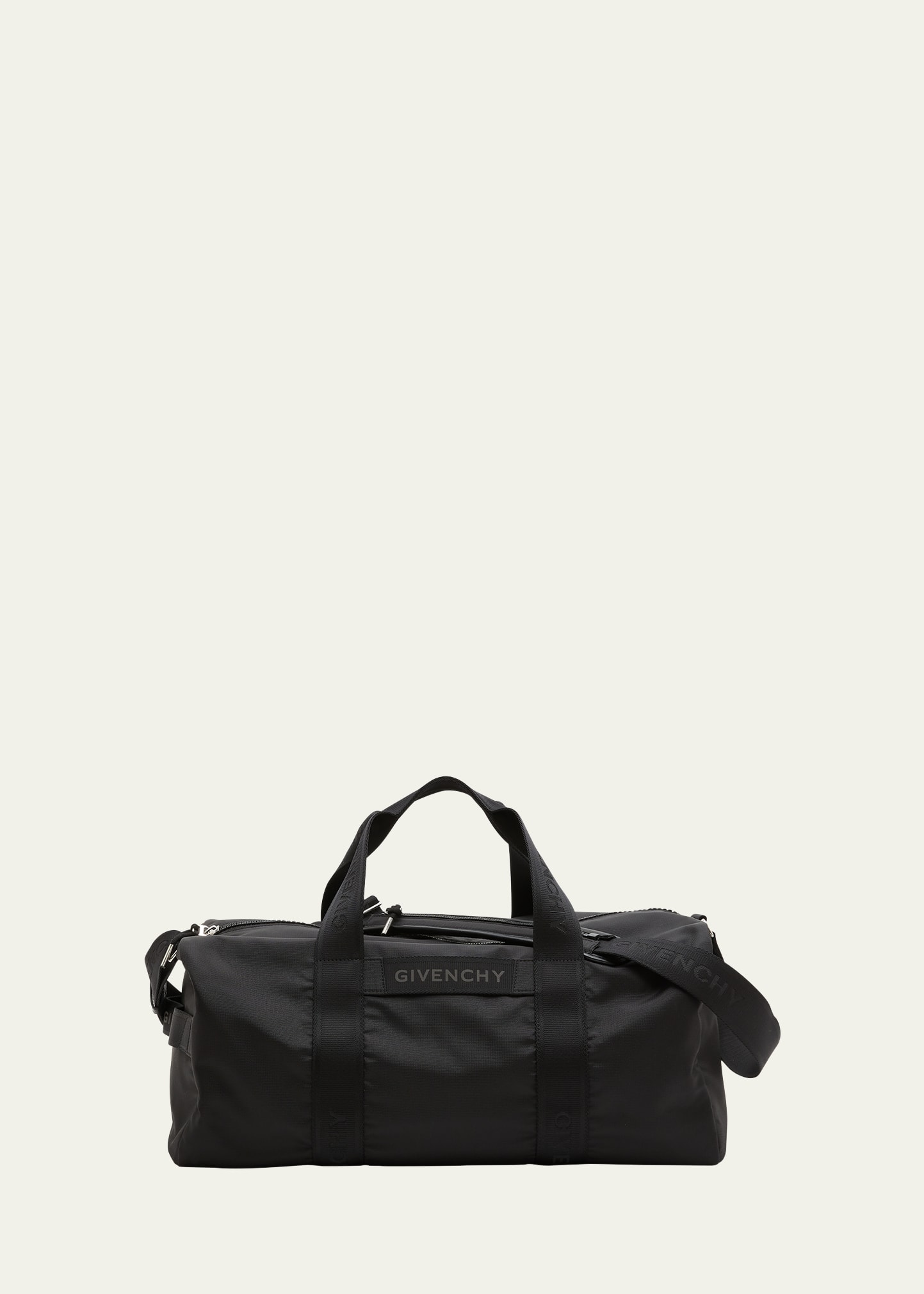Givenchy duffel bag in Amni® nylon Two jacquard logo carry handles Adjustable shoulder strap; shoulder pad Front and side carry handle; tonal logo lettering 4G-zip closure Interior, one zip pocket Approx. 8"H x 12"W Made in Italy