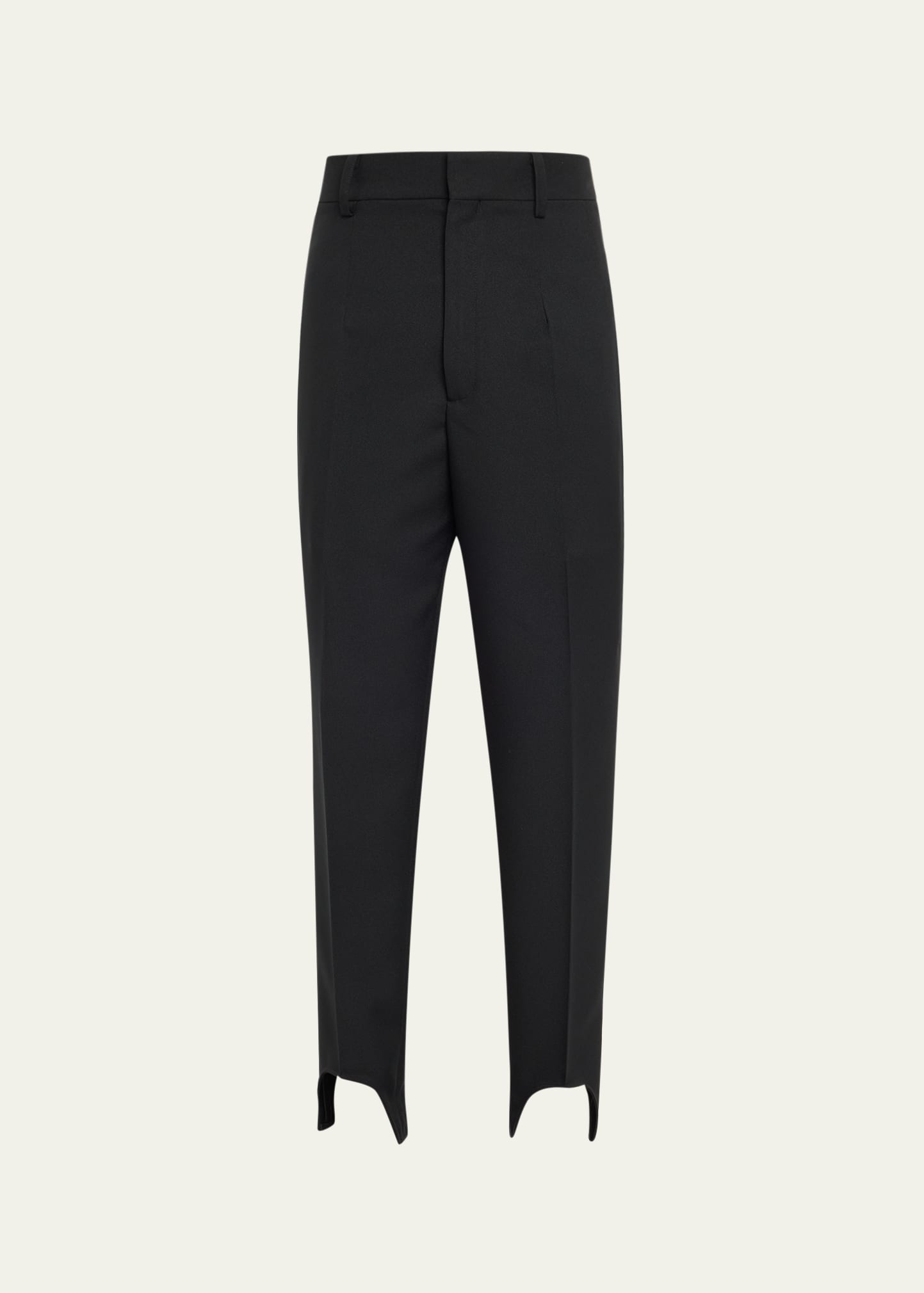 RANDOM IDENTITIES garterless trousers in solid gabardine High rise Darted front Extended side seam pockets Back welt pockets Cropped fit Slim legs Polyester/nylon/cotton Made in Italy