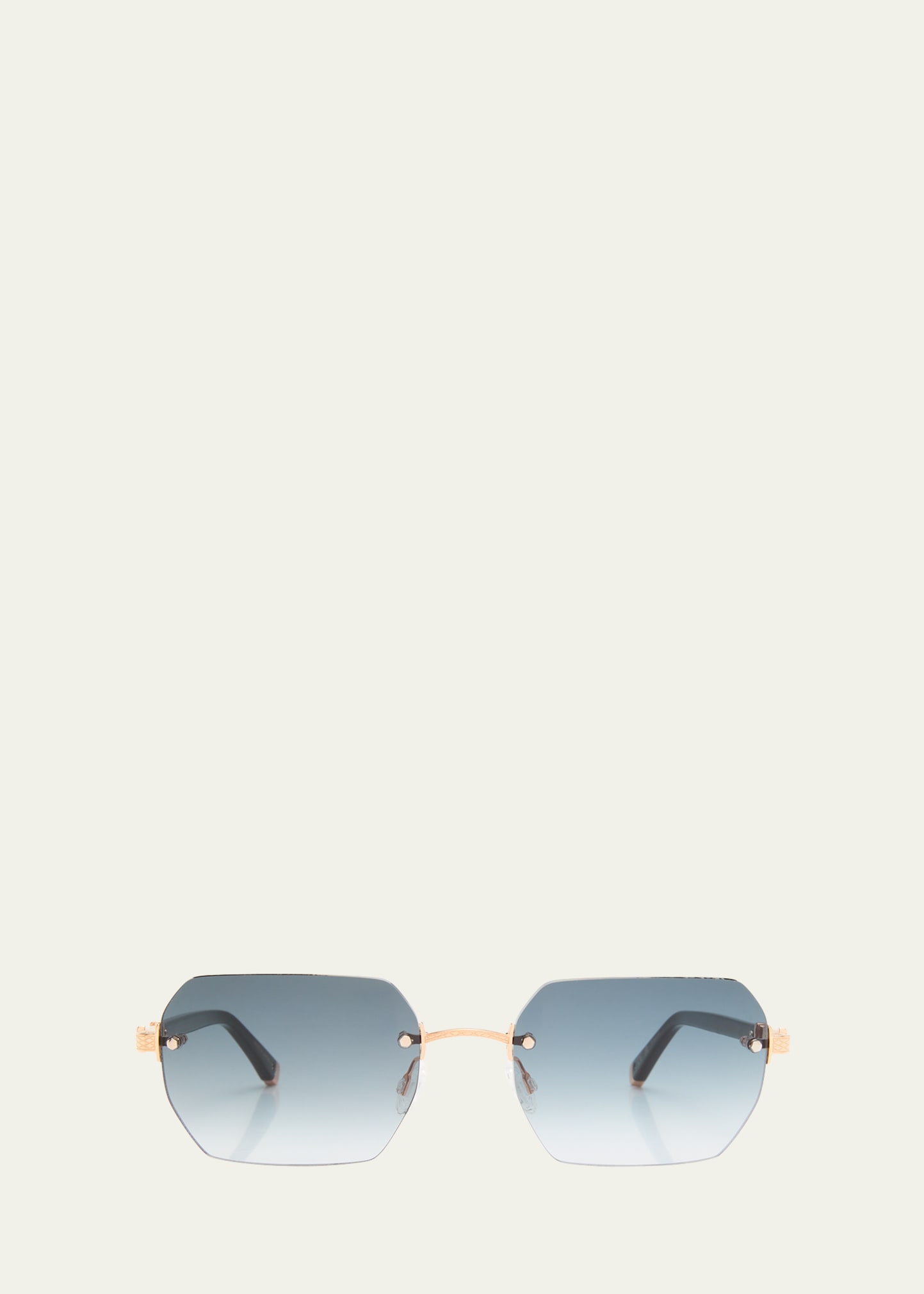 Barton Perreira "Jude" rectangle sunglasses from the Rimless Collection Eye/bridge/temple (in mm): 56-20-148 Gradient lenses Rimless Adjustable nose pads Filigreed hardware Thin arms; curved temple tips Acetate/titanium Wipe clean 100% UVA/UVB protection Made in Japan