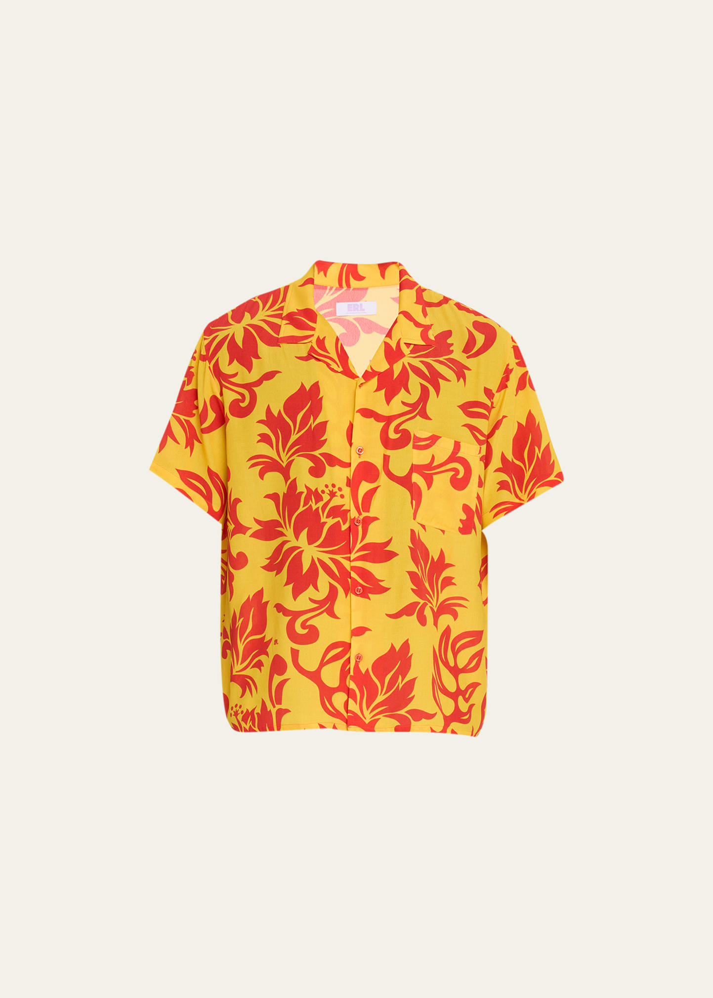ERL camp shirt in bicolor leaf print Notched collar; button placket Chest patch pocket Short sleeves Relaxed fit Viscose Made in France