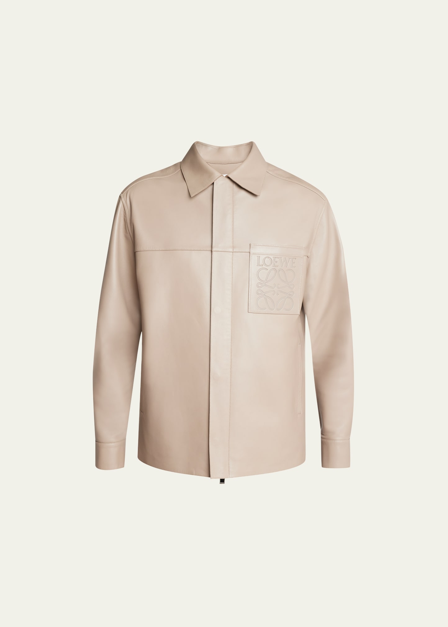 Loewe overshirt in smooth, supple lambskin leather Spread collar Concealed zip/snap placket Patch pocket with debossed Anagram logo Long sleeves; snap cuffs Made in Spain