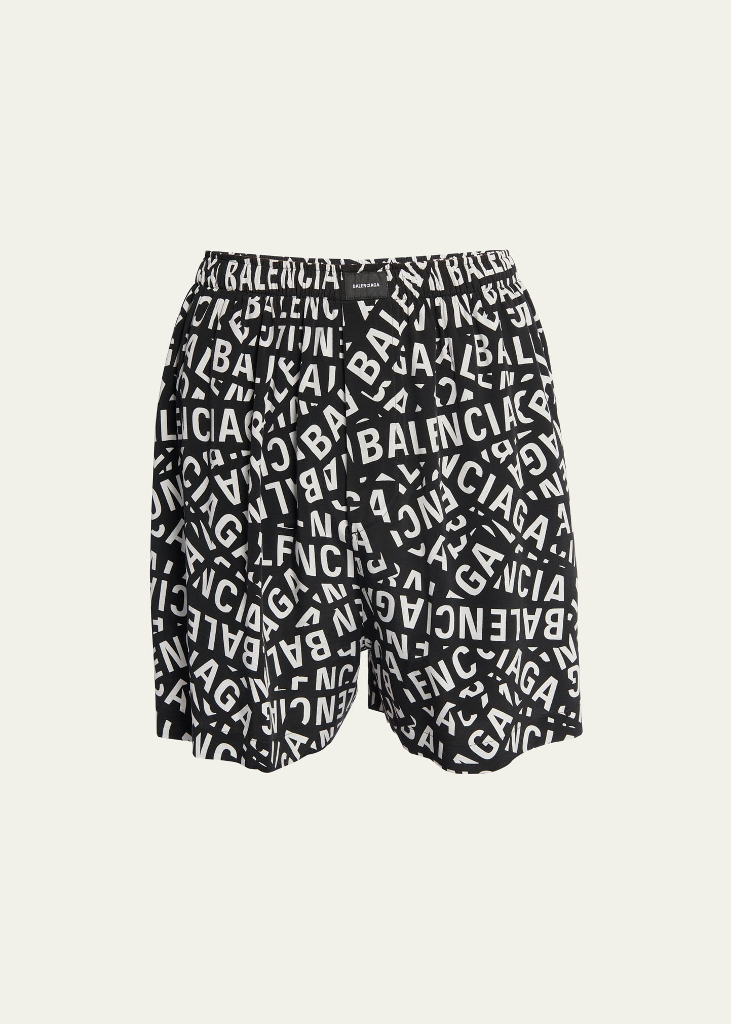 Balenciaga logo striped viscose-poplin shorts featuring an elasticated waistband Side seam pockets; back patch pocket Mid-rise Easy fit Knee-length Pull-on style Cupro/viscose Dry clean Made in Italy