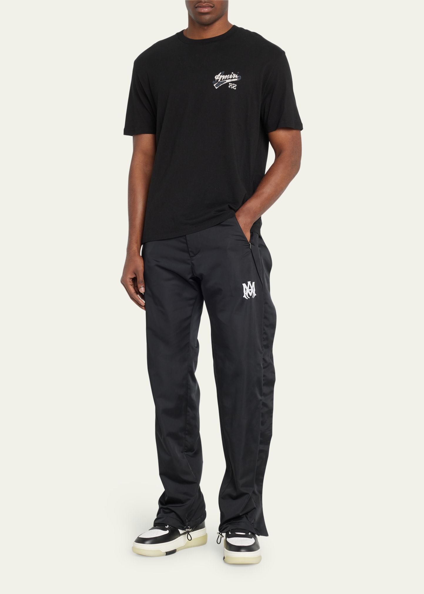 Amiri solid snowpants with MA logo at front Regular rise Flat front Front slash pockets Full length Snap waist adjusters Adjustable drawstring cuffs Polyester Dry clean Made in Italy
