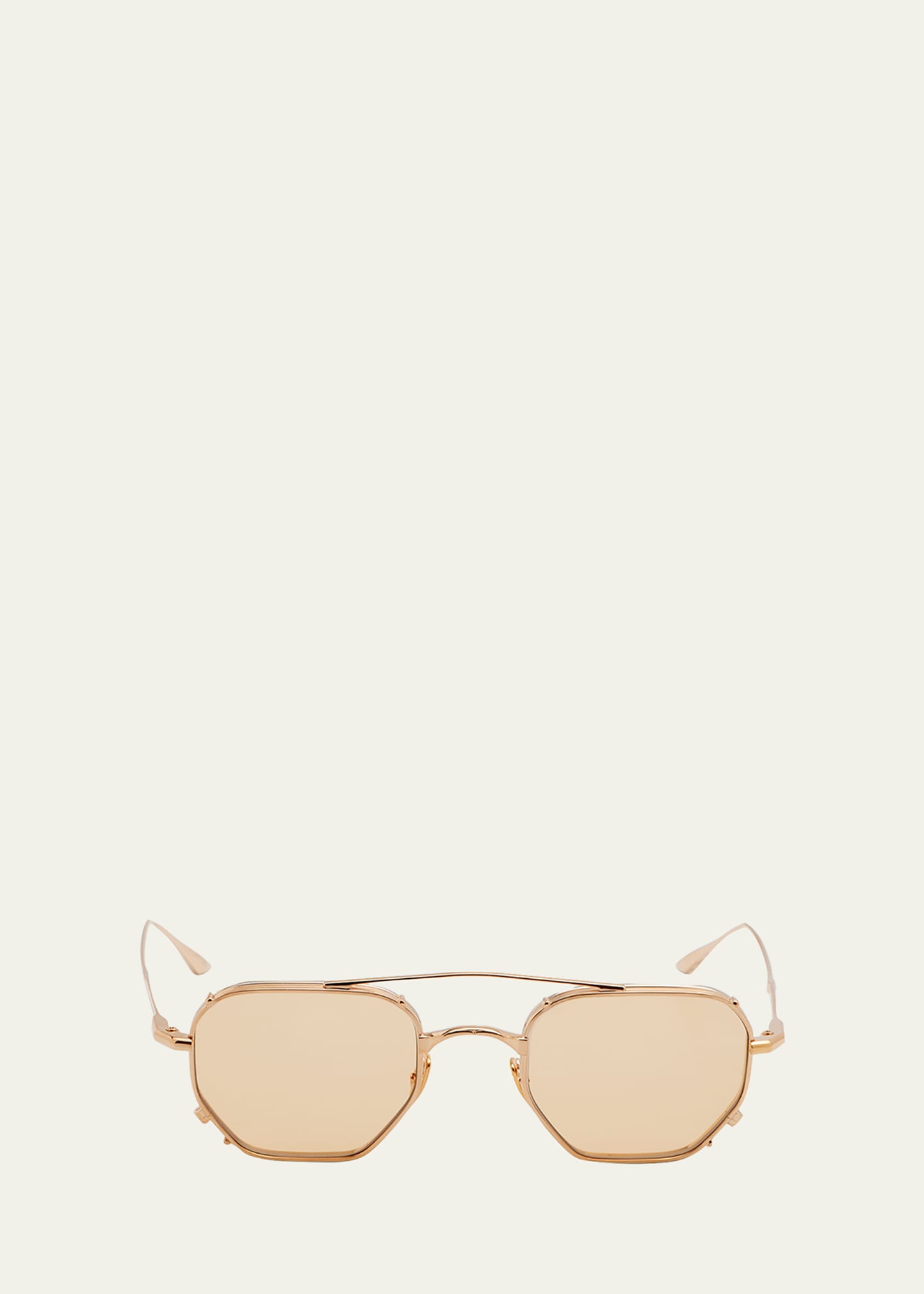 Jacques Marie Mage "Marbot" geometric aviator sunglasses feature a tonal design Solid-color lenses Thin, full-rim frames Double nose bridge Adjustable nose pads Thin, tapered arms; curved temple tips Acetate/metal 100% UVA/UVB protection Made in Japan