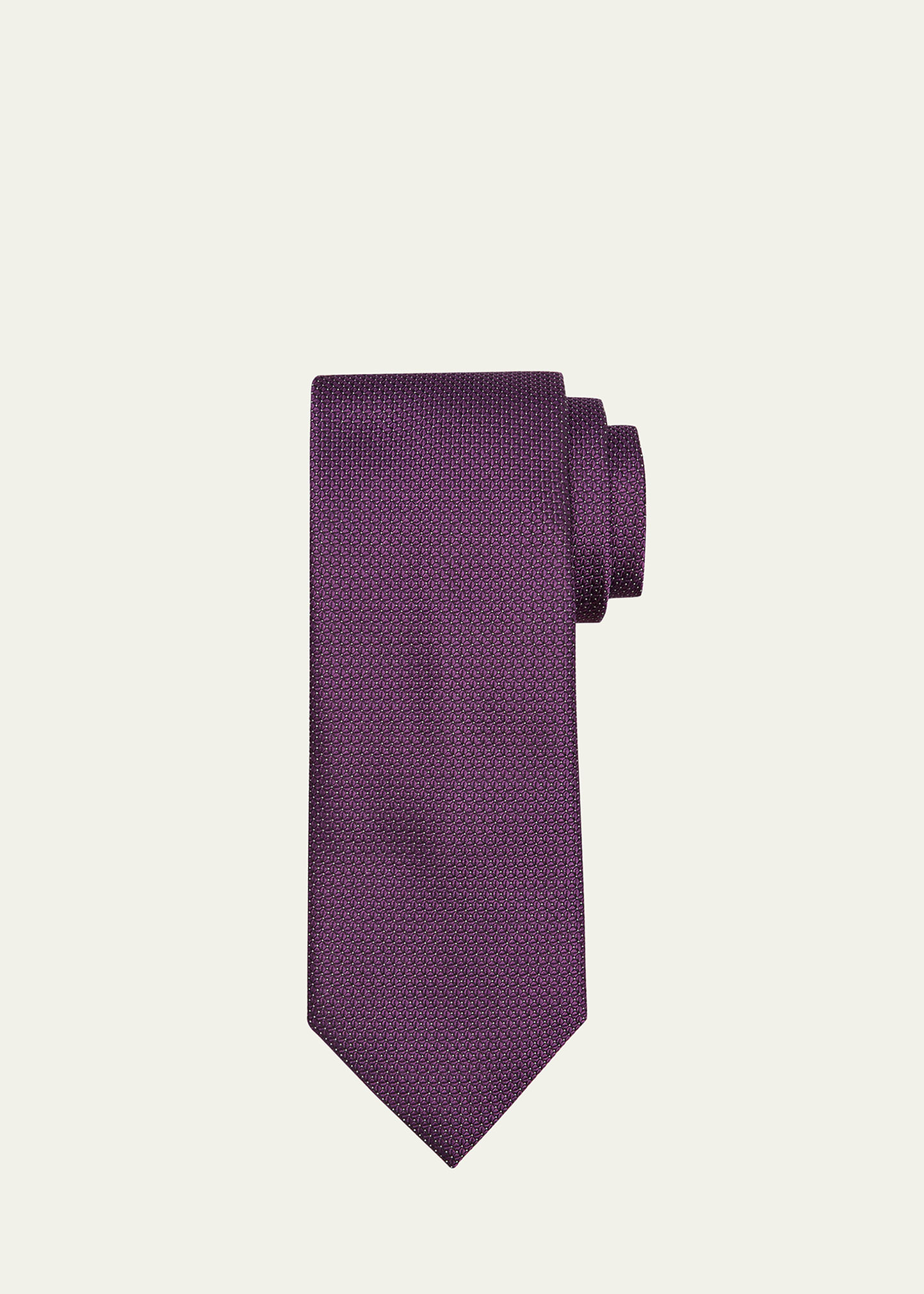 ZEGNA men's tie is crafted from an ultra-high thread count for a natural sheen Approx. 3" wide Micro-geometric jacquard motif Self-tie style Silk Made in Italy