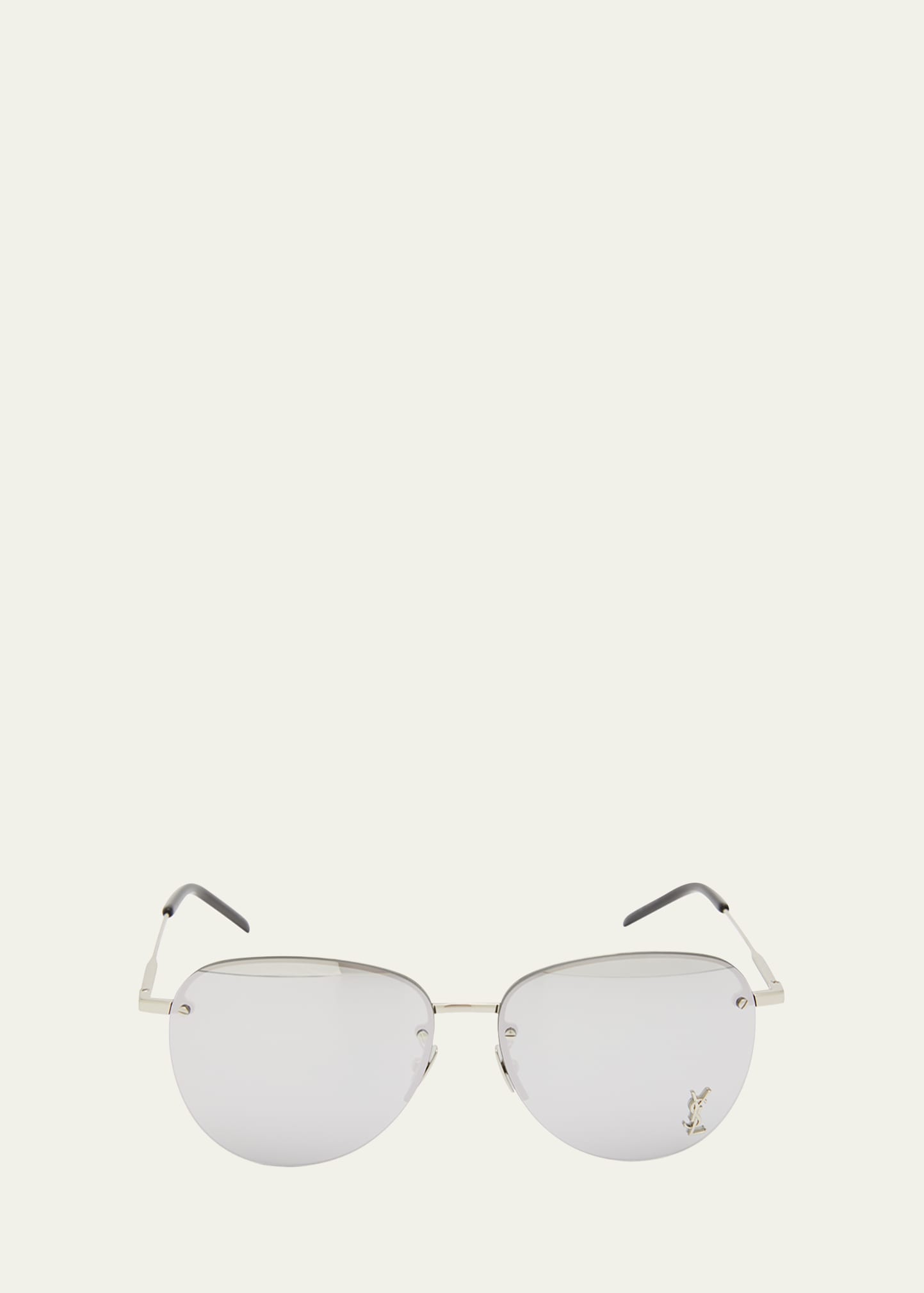 Saint Laurent pilot aviator sunglasses feature monogram plaqué at left lens Solid-colored lenses Rimless Adjustable nose pads Thin arms; curved capped temple tips Metal/nylon 100% UVA/UVB protection Made in Italy