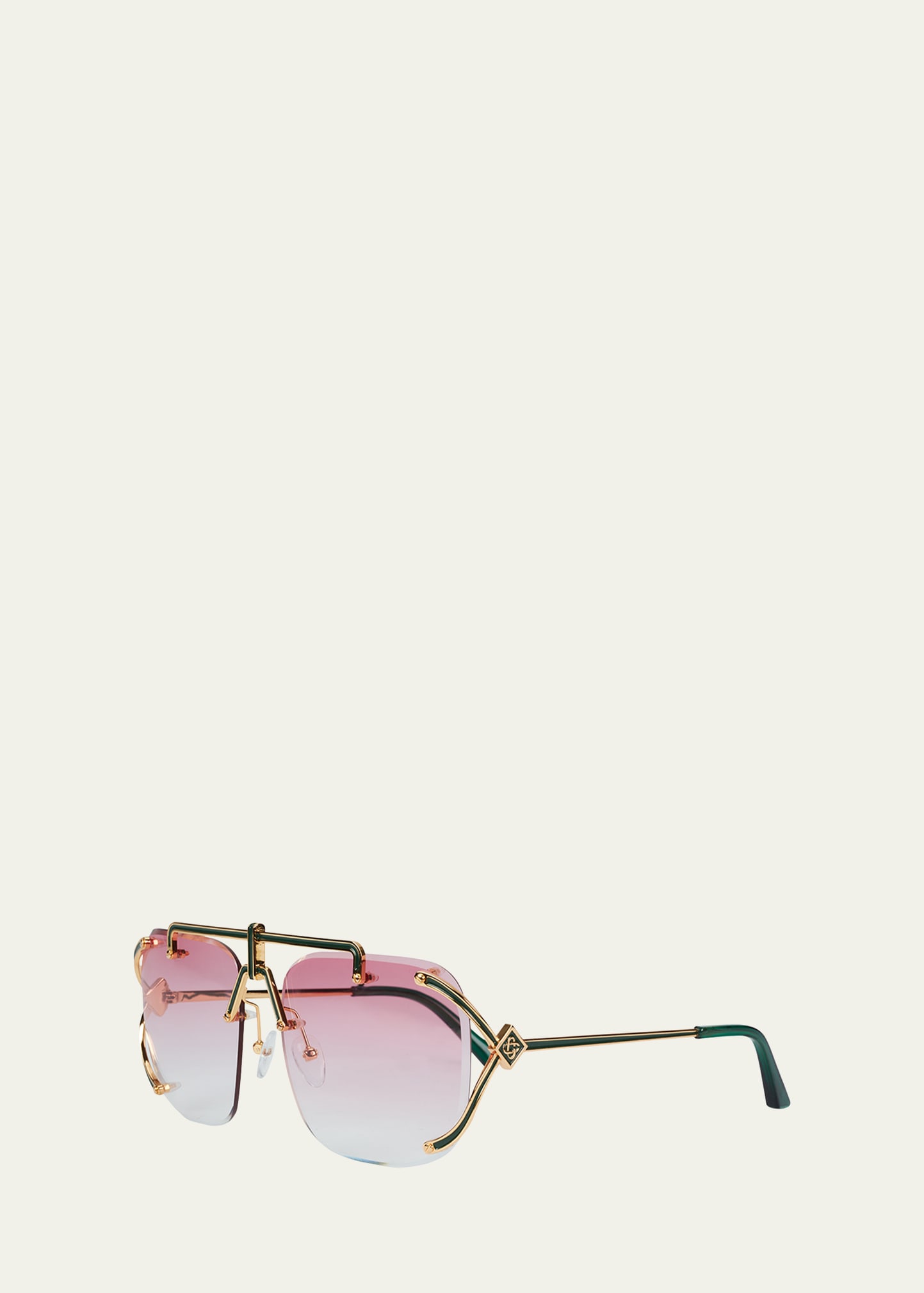 CASABLANCA square aviator sunglasses feature wire rim and monogram plaqué at temples Gradient lenses Wire-rim frames; gold-tone trim Adjustable nose pads Thin, tapered arms; curved capped temple tips Acetate/metal 100% UVA/UVB protection Made in Japan