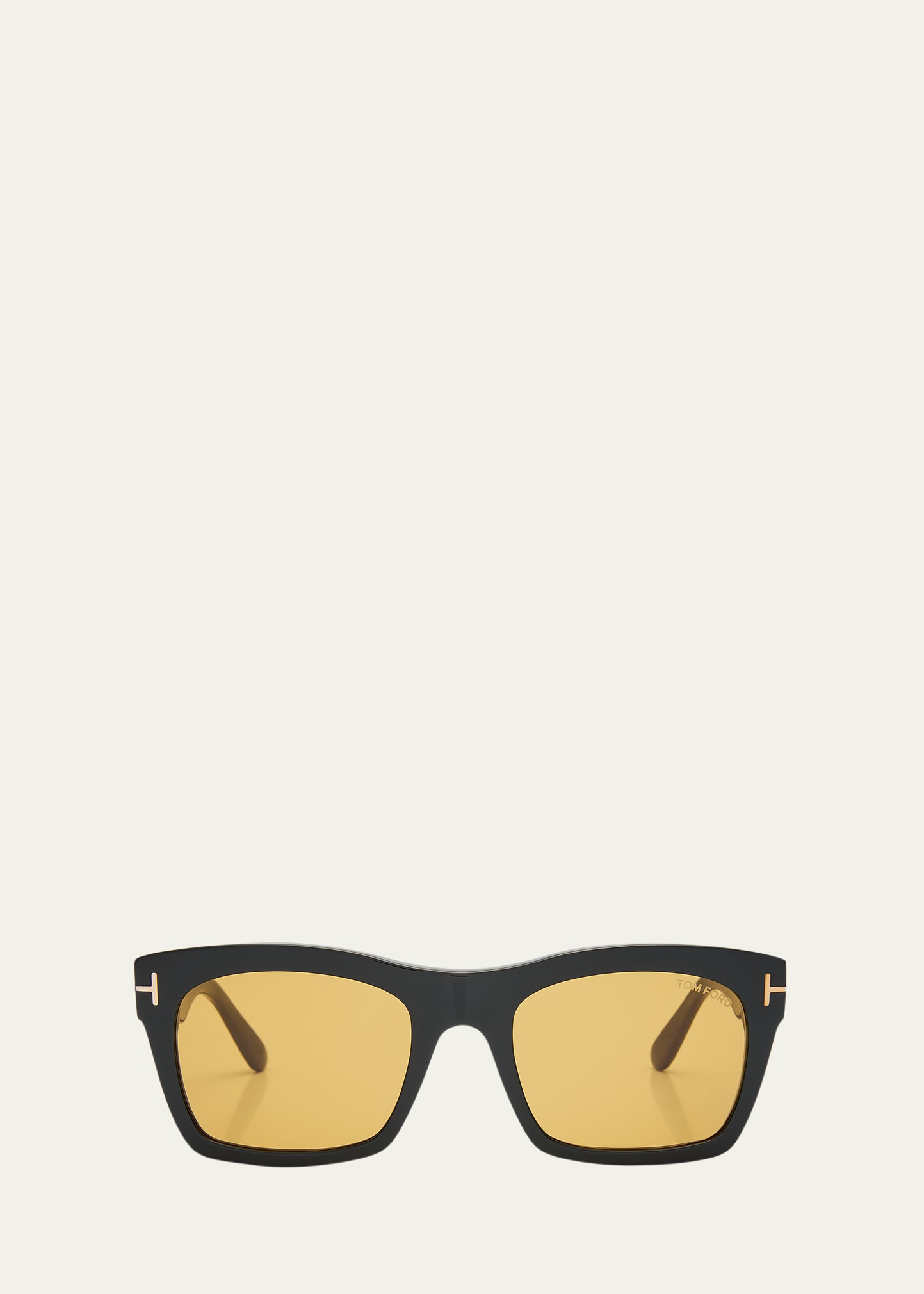TOM FORD "NICO-02" square sunglasses with signature T-hinges Eye/bridge/temple (in mm): 56-21-145 Solid-color lenses Logo script at left lens Full-rim frames Saddle nose bridge Tapered arms; curved temple tips Acetate/bpa-free plastic 100% UVA/UVB protection Made in Italy