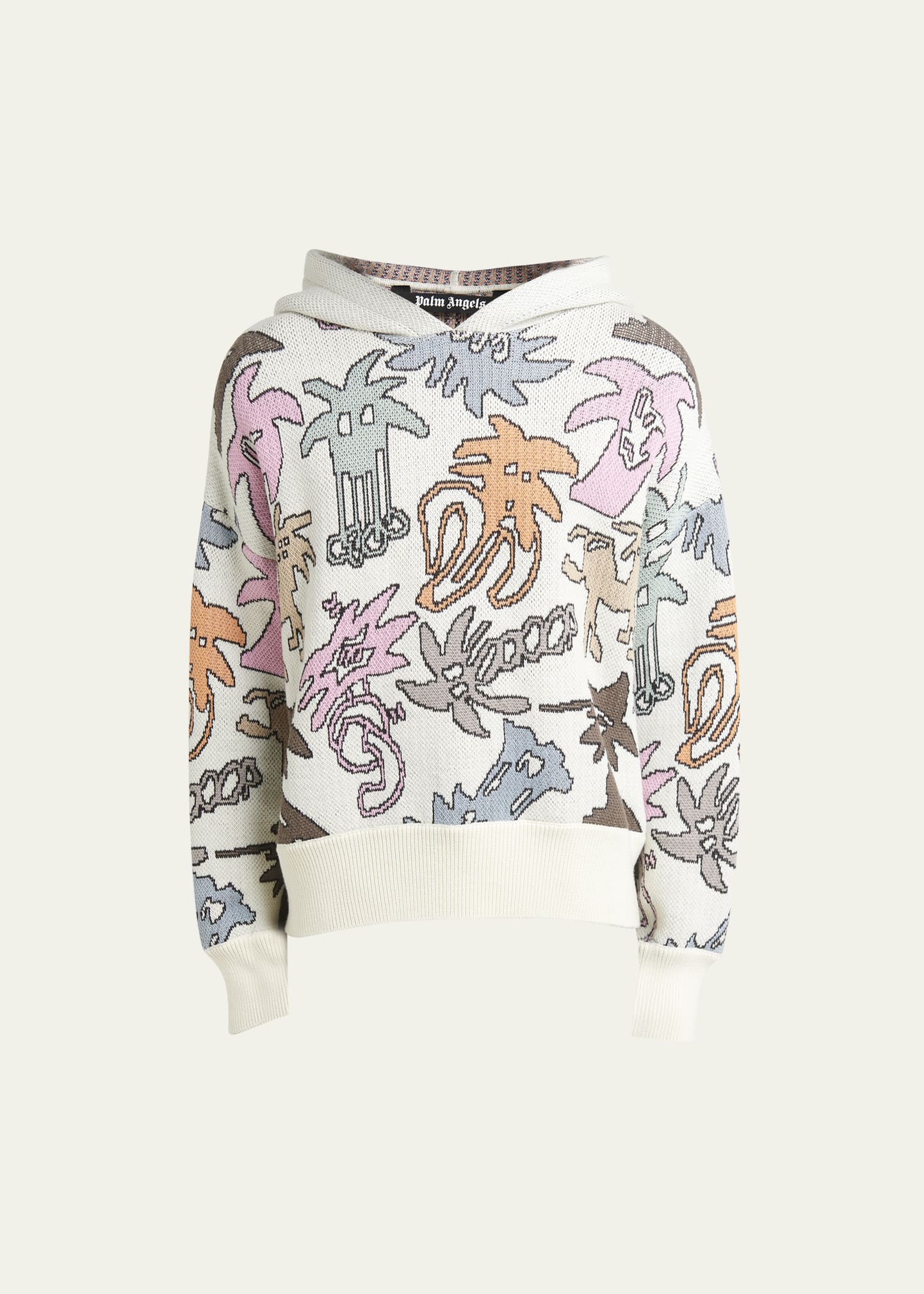 Palm Angels "Palmity" hoodie in graphic jacquard Hooded neckline Long sleeves Ribbed cuffs and waistband Pullover style Wool Made in Italy