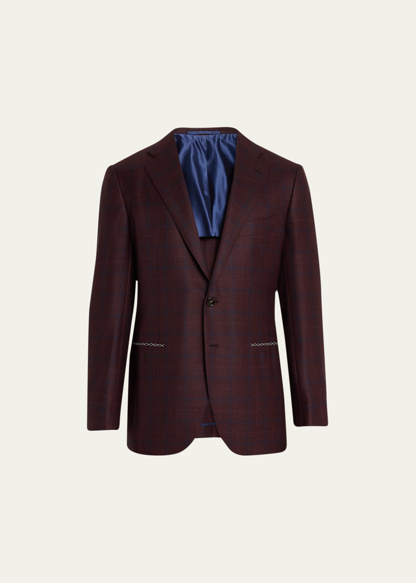 Cesare Attolini plaid sport jacket Notched lapels; two-button front Chest welt pocket Side patch pockets Basted sleeves Double-vented back Wool/cashmere Made in Italy