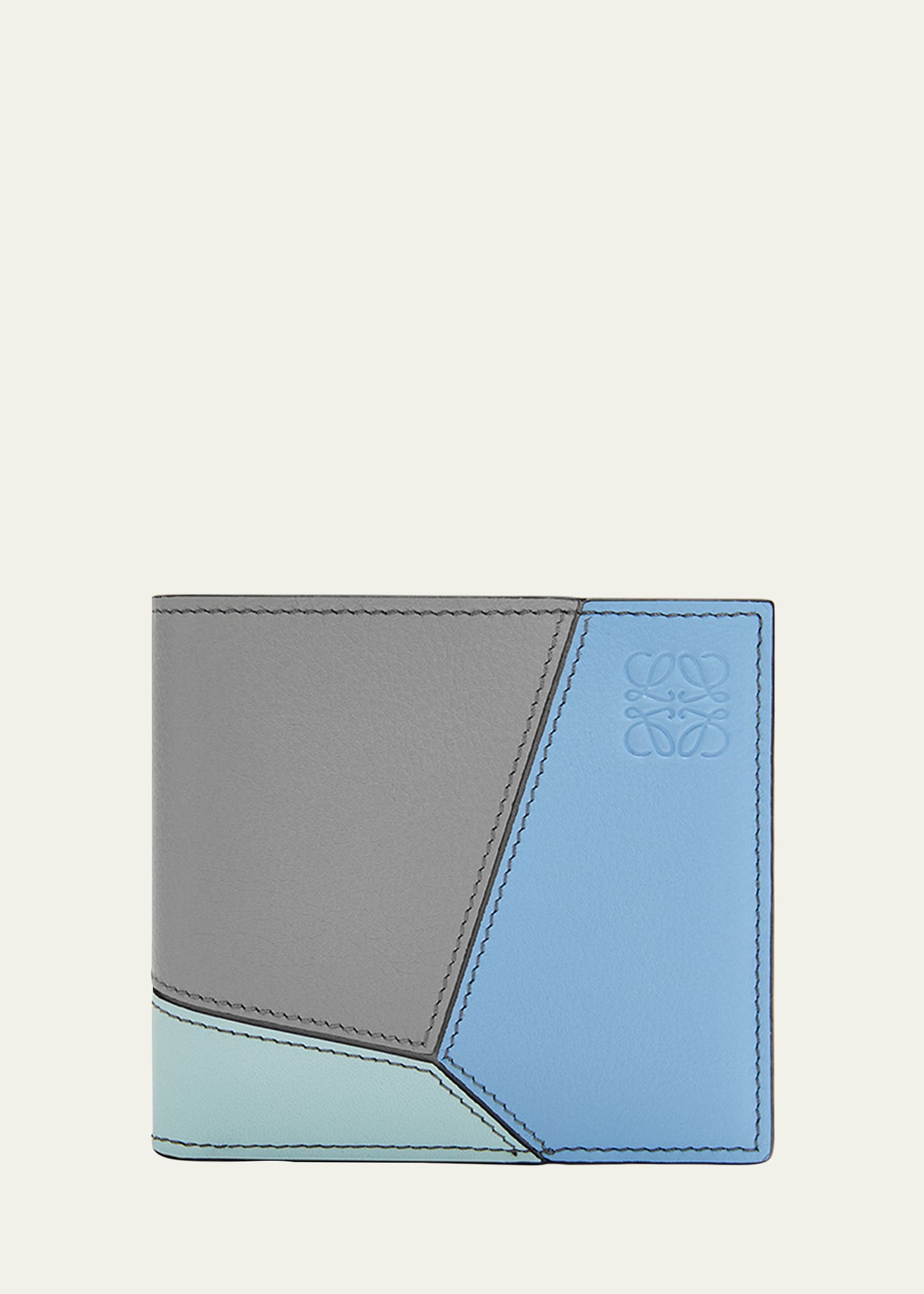 Loewe bifold wallet features a distinctive geometric Puzzle design with the embossed Anagram motif at the front Approx. 5"L x 1"W x 4"H Eight internal card slots; two side slip pockets Two internal note compartments Calf leather/polyester Made in Spain