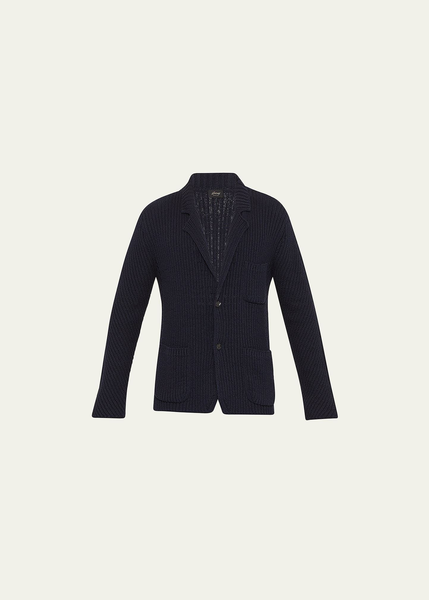 Brioni cardigan sweater in rib-knit fabric Notch lapels V-neckline Button front Three front patch pockets Long sleeves Classic fit Cotton Made in Italy