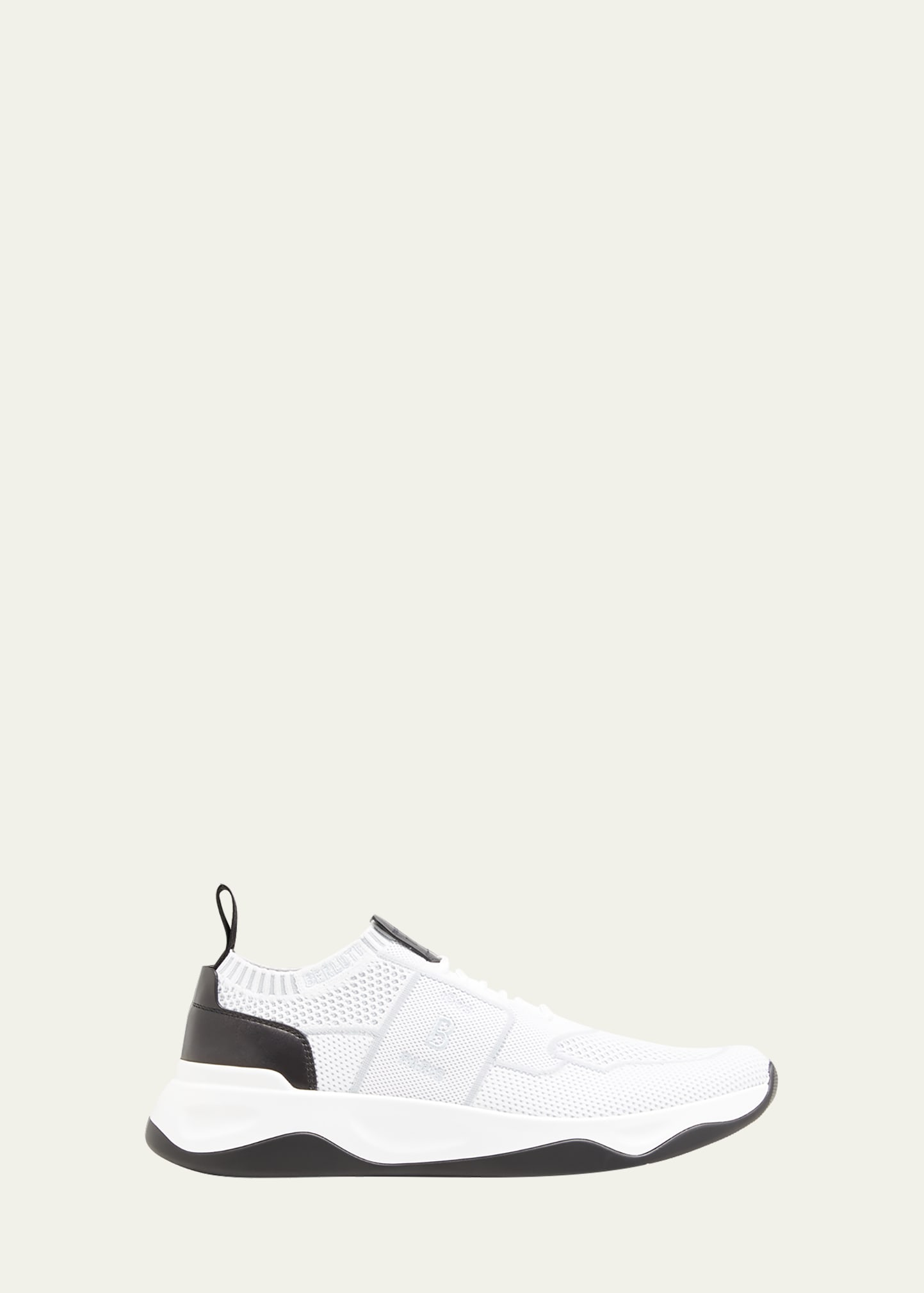 Berluti "Shadow Knit" sneakers feature a sock-like knit upper with contrast leather overlays Flat chunky heel Reinforced round toe Lace-up vamp Embossed leather logo patch at tongue Ribbed collar Pull tab at backstay Embossed logo at heel Contrast rubber outsole Made in Italy
