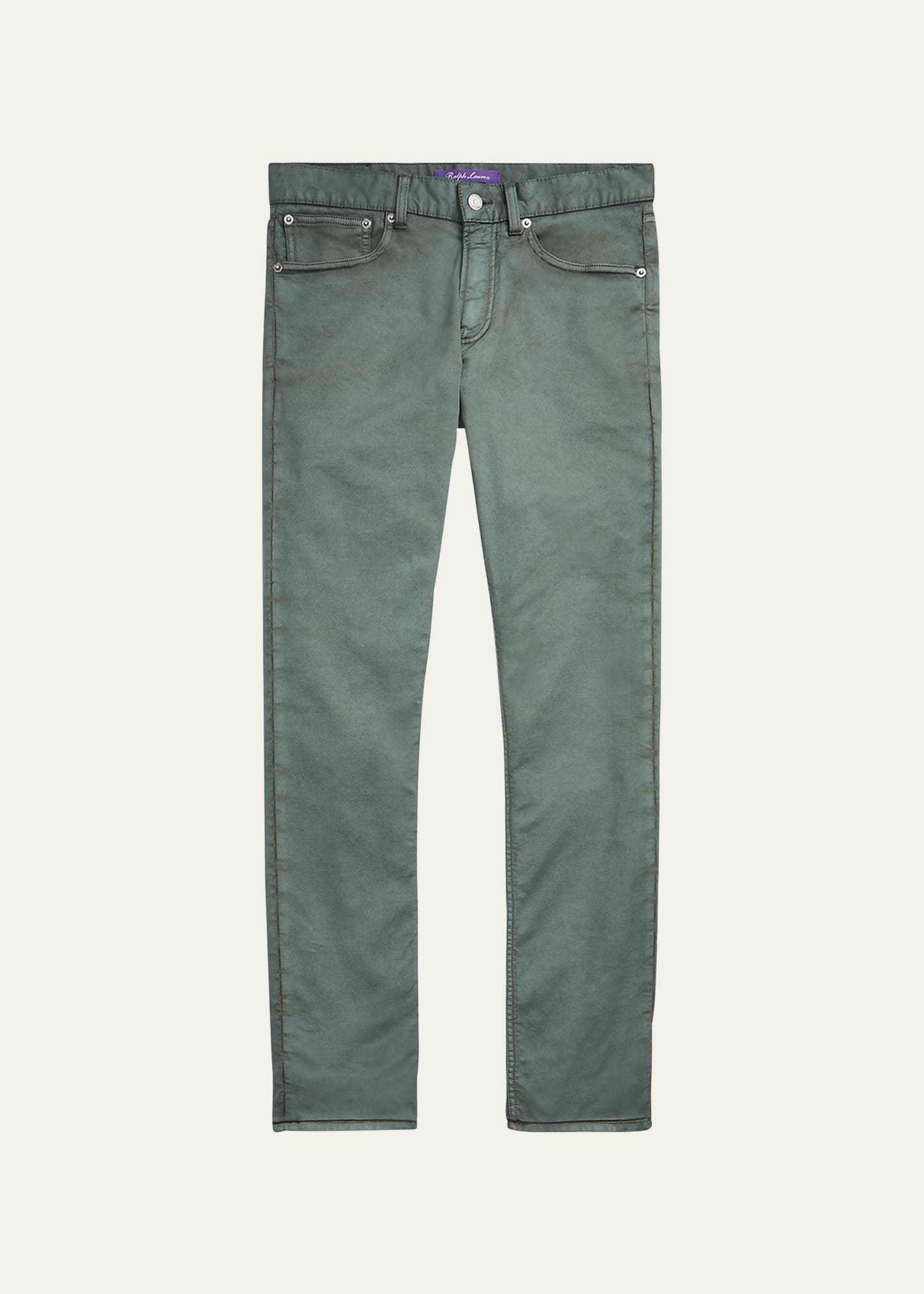 Ralph Lauren Home pants are garment-dyed and crafted from lightweight Italian cotton dobby fabric enhanced with stretch for ease of movement Approx. 8.75" rise; 14" leg opening (size 32W) Button-zip front; belt loops High-rise; flat front Five-pocket style Leather logo patch at back Fitted through skinny legs Full length Slim fit Model is 6'1" (size 32w x 32l) Cotton/elastane Machine washable Made in Portugal