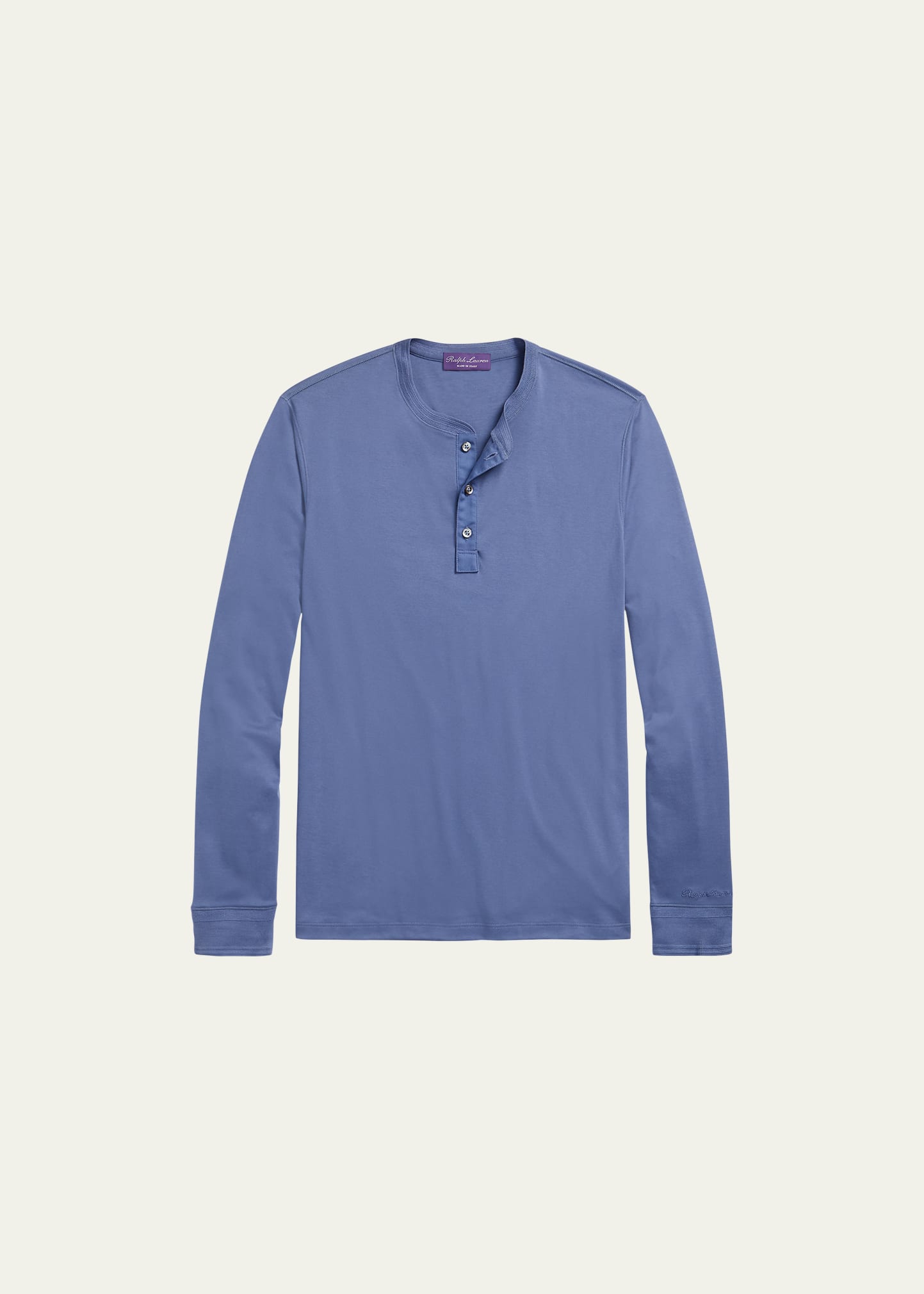 Ralph Lauren Home solid interlock henley shirt with a luxuriously soft hand feel Round neckline; three-button placket Long sleeves Banded cuffs Pullover style Cotton Made in Peru