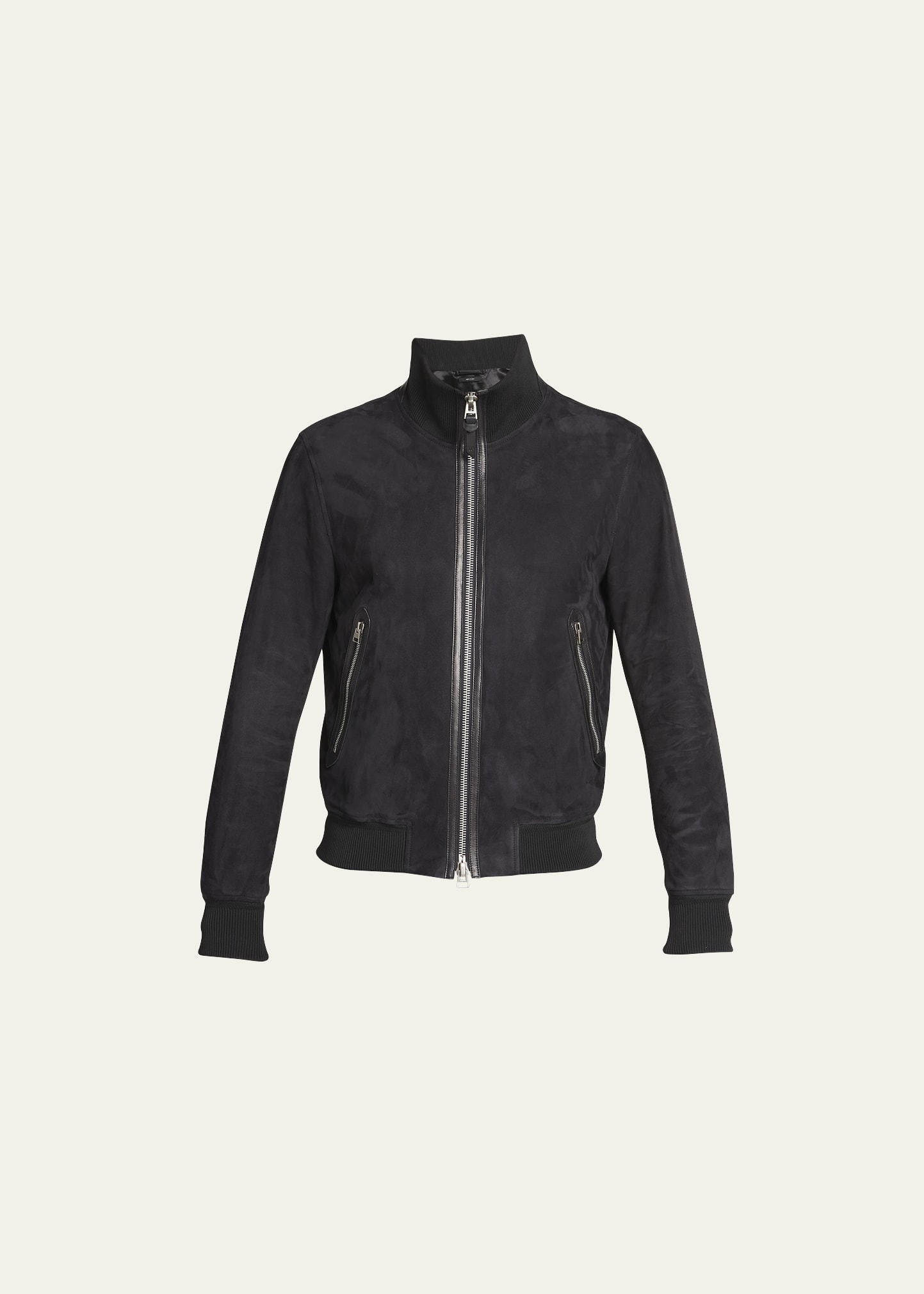 TOM FORD blouson jacket in supple suede Ribbed stand collar Leather snap tab at the back neck Two-way zip front Side zip pockets Long sleeves Ribbed cuffs and hem Leather Lining: Polyester/cupro/elastane/nylon/viscose Made in Italy
