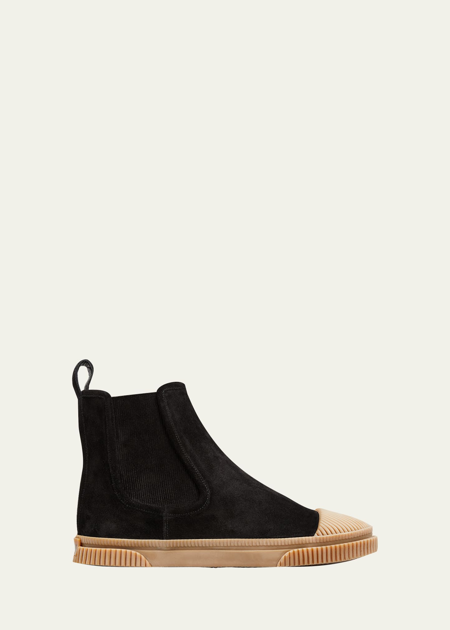 Loewe boots in suede Flat heel Round cap toe Gored sides Pull-tab on back of collar Logo patch on back midsole Textured rubber outsole Made in Spain