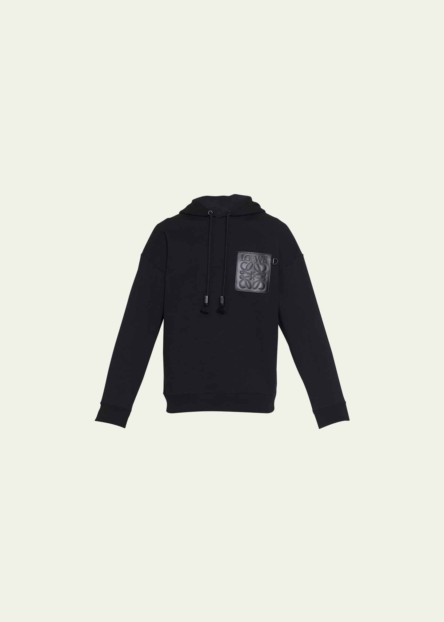 Loewe terry sweatshirt with tonal leather Anagram patch Drawstring hood Long sleeves Banded cuffs and hem Pullover style Cotton Made in Italy