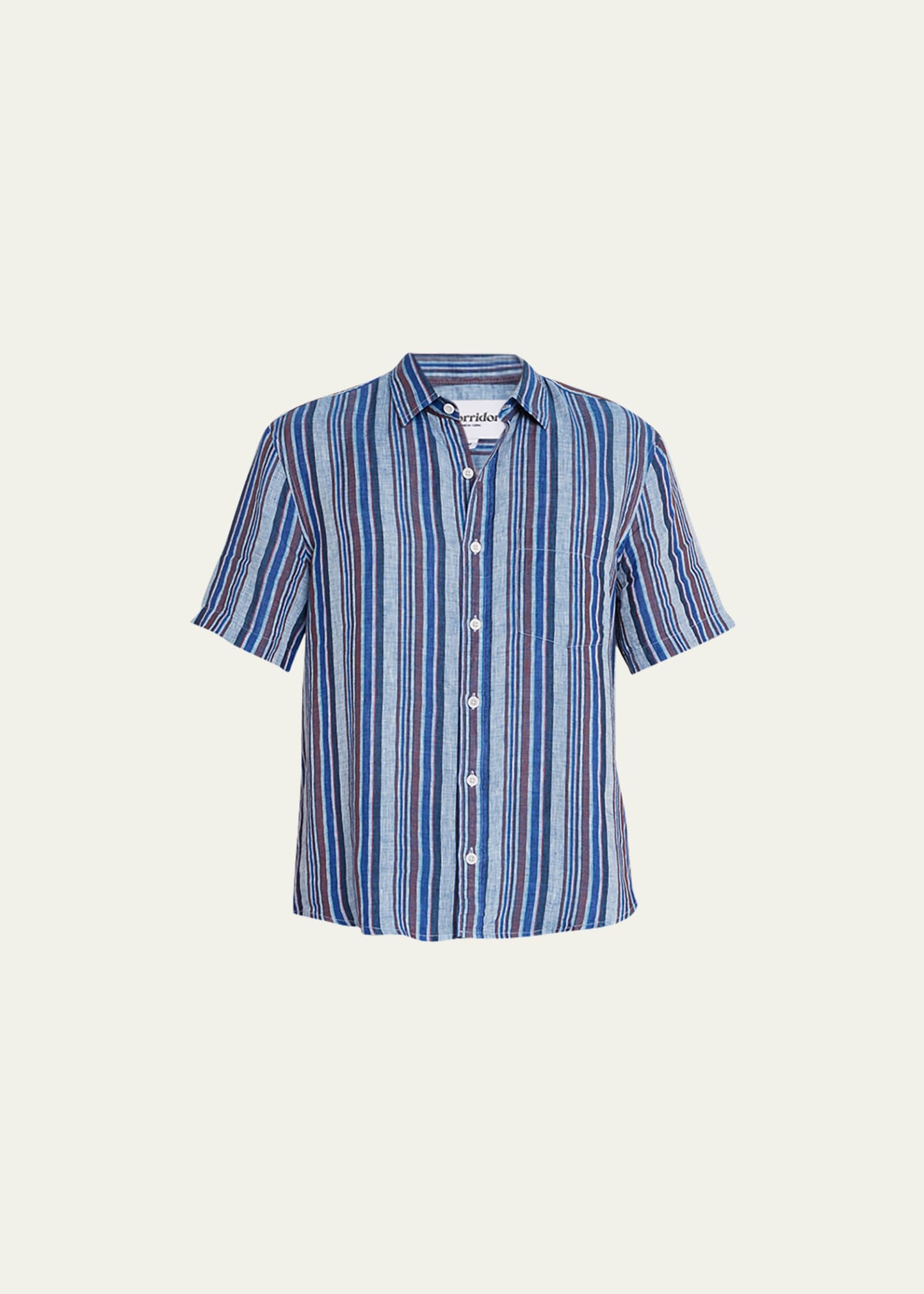 CORRIDOR sport shirt in vertical stripes Spread collar; button front Patch pocket Short sleeves Linen Made in Portugal