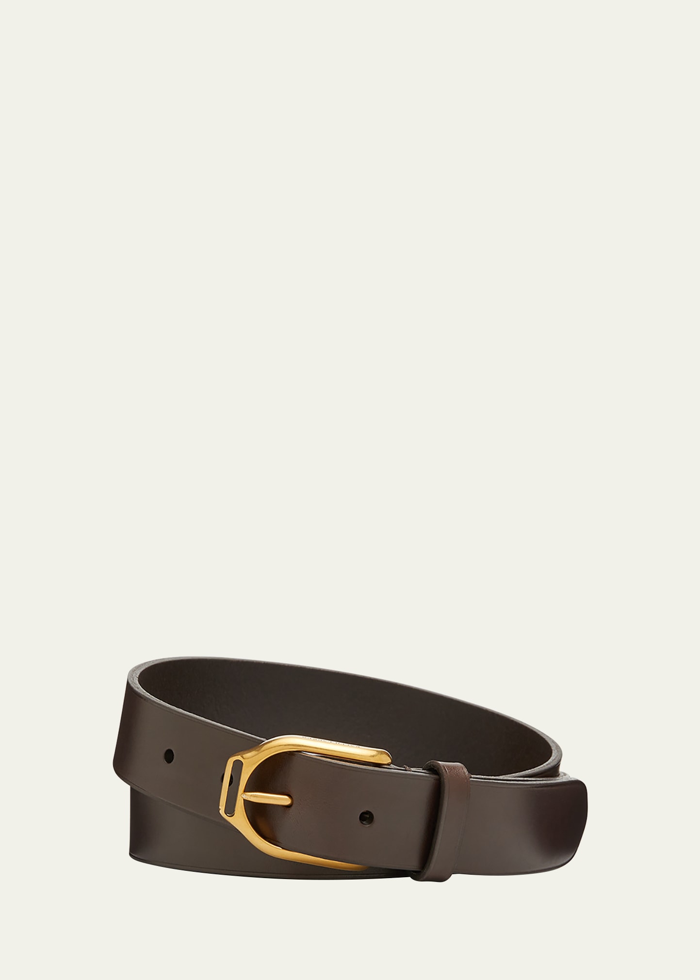 Ralph Lauren Home "Wellington" belt features a gold-tone harness buckle Approx. 1"W Gold-tone single-prong buckle Adjustable fit Leather Made in Italy