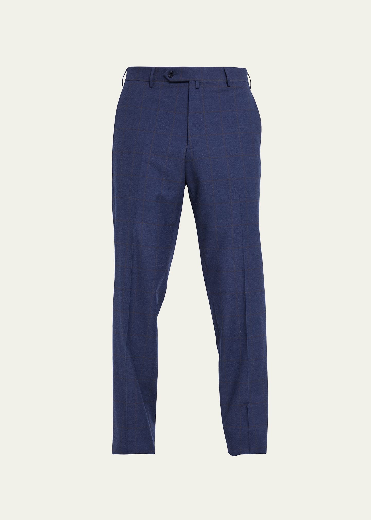 Zanella trousers in windowpane motif Regular rise Flat front Side slip pockets Back welt pockets Full length Straight legs Zip fly with extended button closure Cotton/wool/cashmere Made in Italy