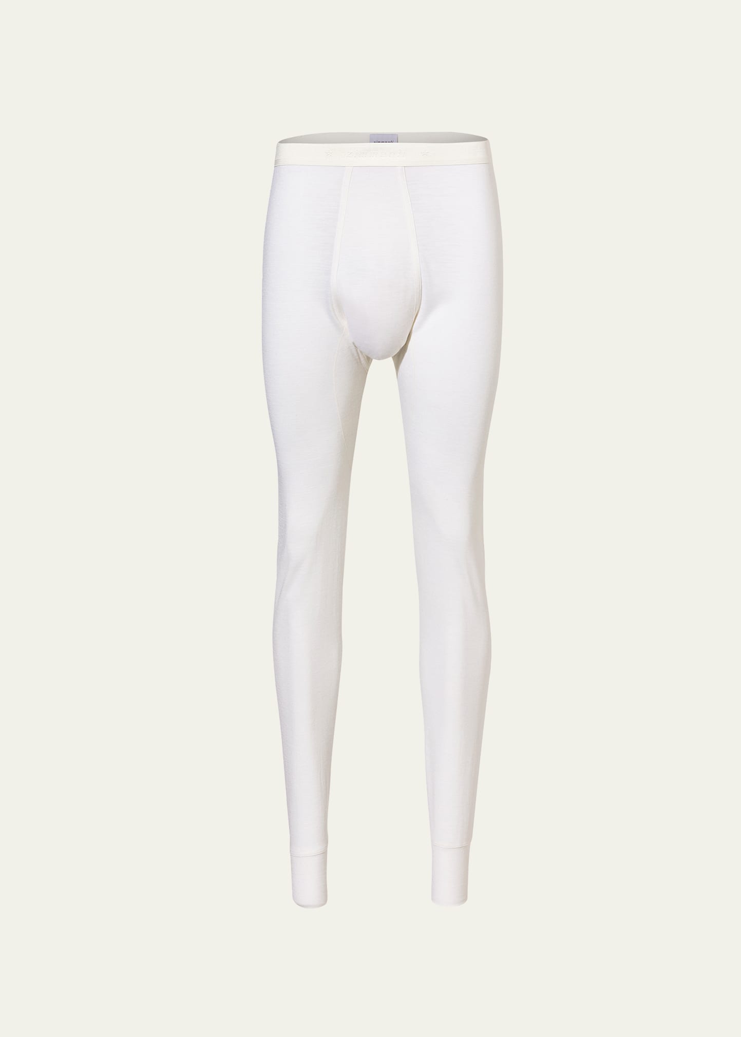 Zimmerli long johns feature reinforced fabric at the inner thighs to prevent chafing Elasticized waistband with jacquard logo Contour pouch Banded cuffs Slim fit Wool/silk Made in Switzerland