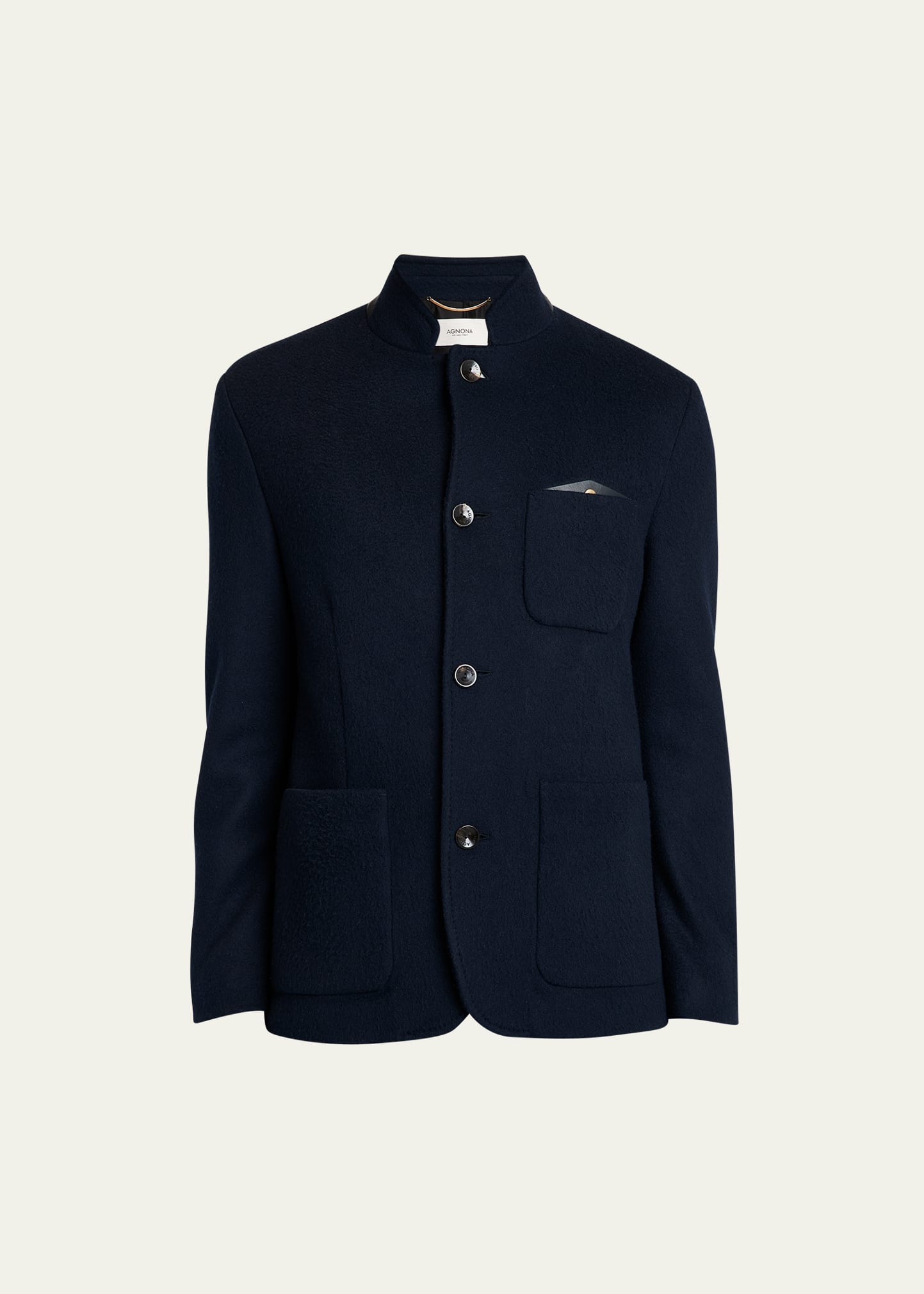 Agnona blazer with three front patch pockets Stand collar Button front Long sleeves Wool/cashmere Made in Italy