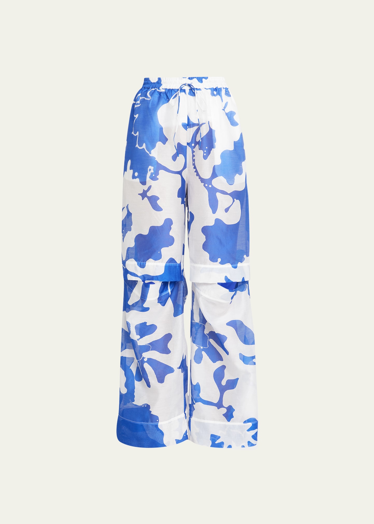 SIR "Vivi" pants cut from a lightweight, sheer fabric in exclusive Merce abstract print with a sheer finish High-rise Drawstring waistband Flat front Full length Cutout knees Wide legs Pull-on style Silk/cotton Imported