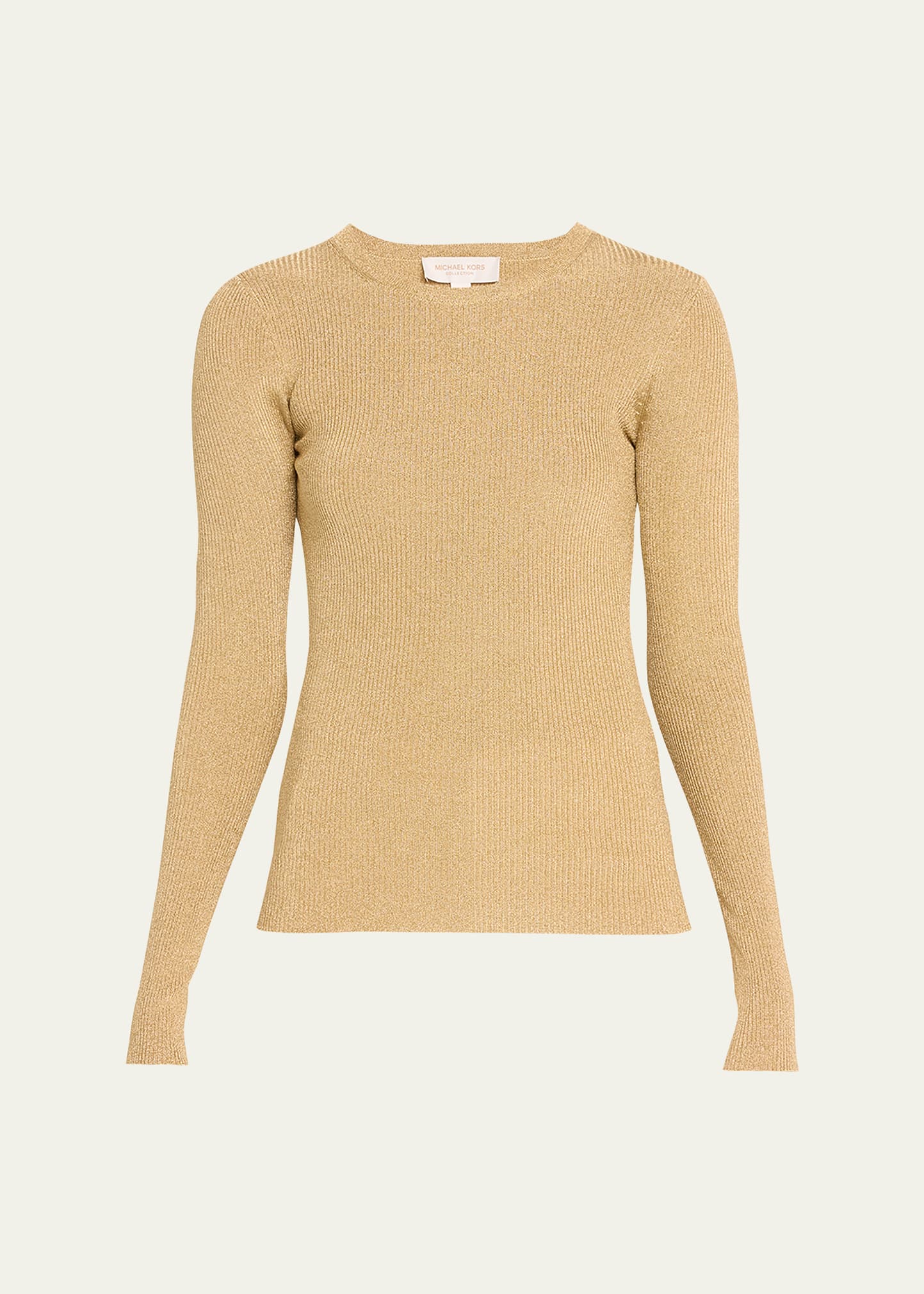 Michael Kors Collection "Hutton" sweater in metallic ribbed knit Crew neckline Long sleeves Fitted Pullover style Viscose Imported