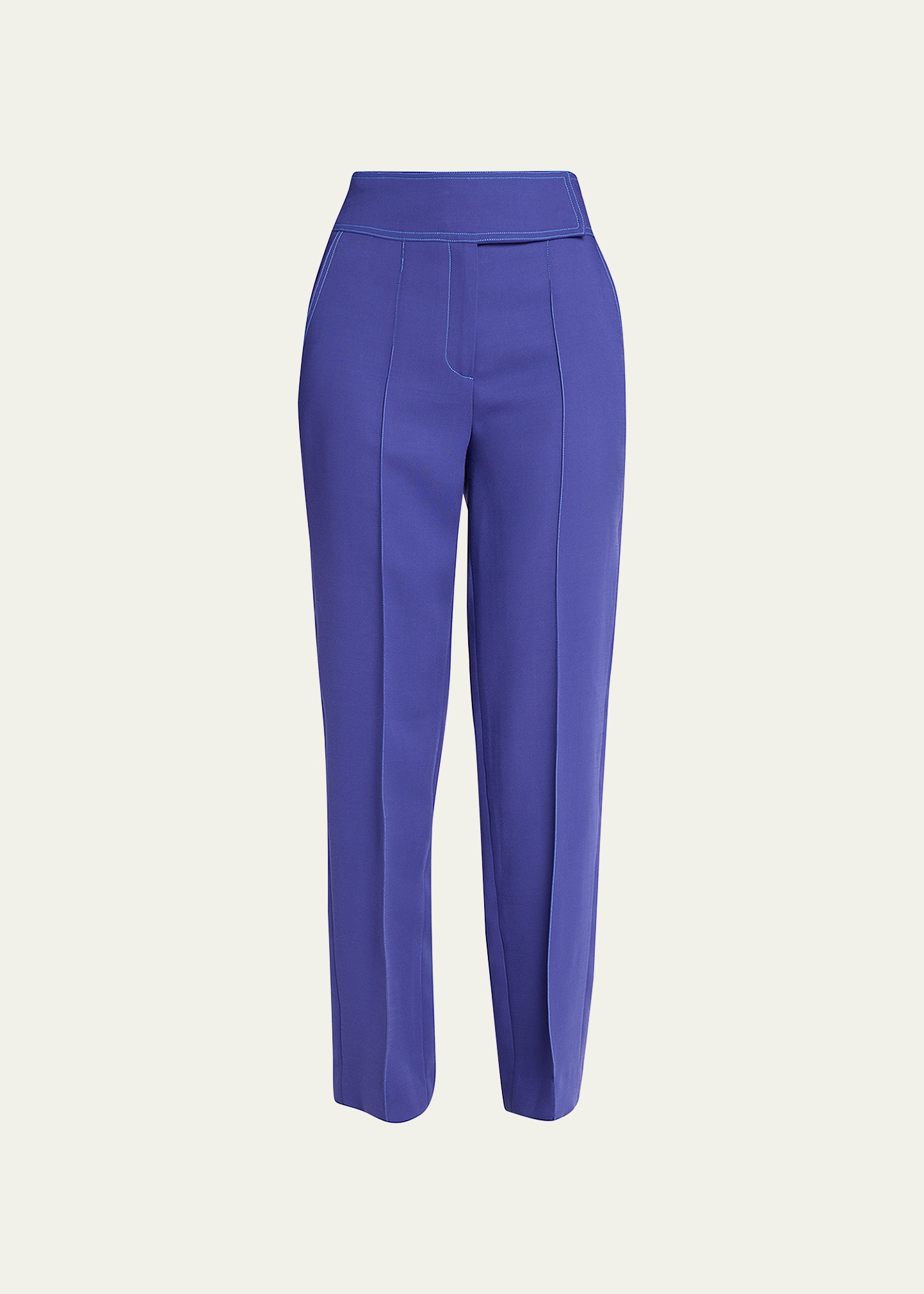 CHRISTOPHER JOHN ROGERS trousers with contrast topstitching Mid rise Flat front Side slip pockets; back welt pockets Tapered legs Full length Extended tab with a hook-and-bar; zip fly Viscose/polyester/elastane Dry clean Made in USA