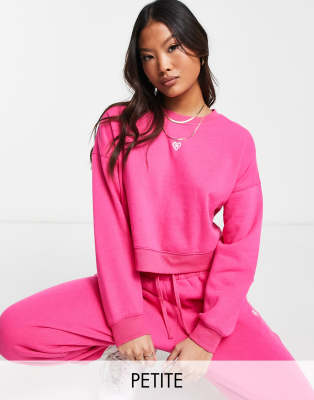 Miss Selfridge Petite cropped sweat in pink with embroidered heart
