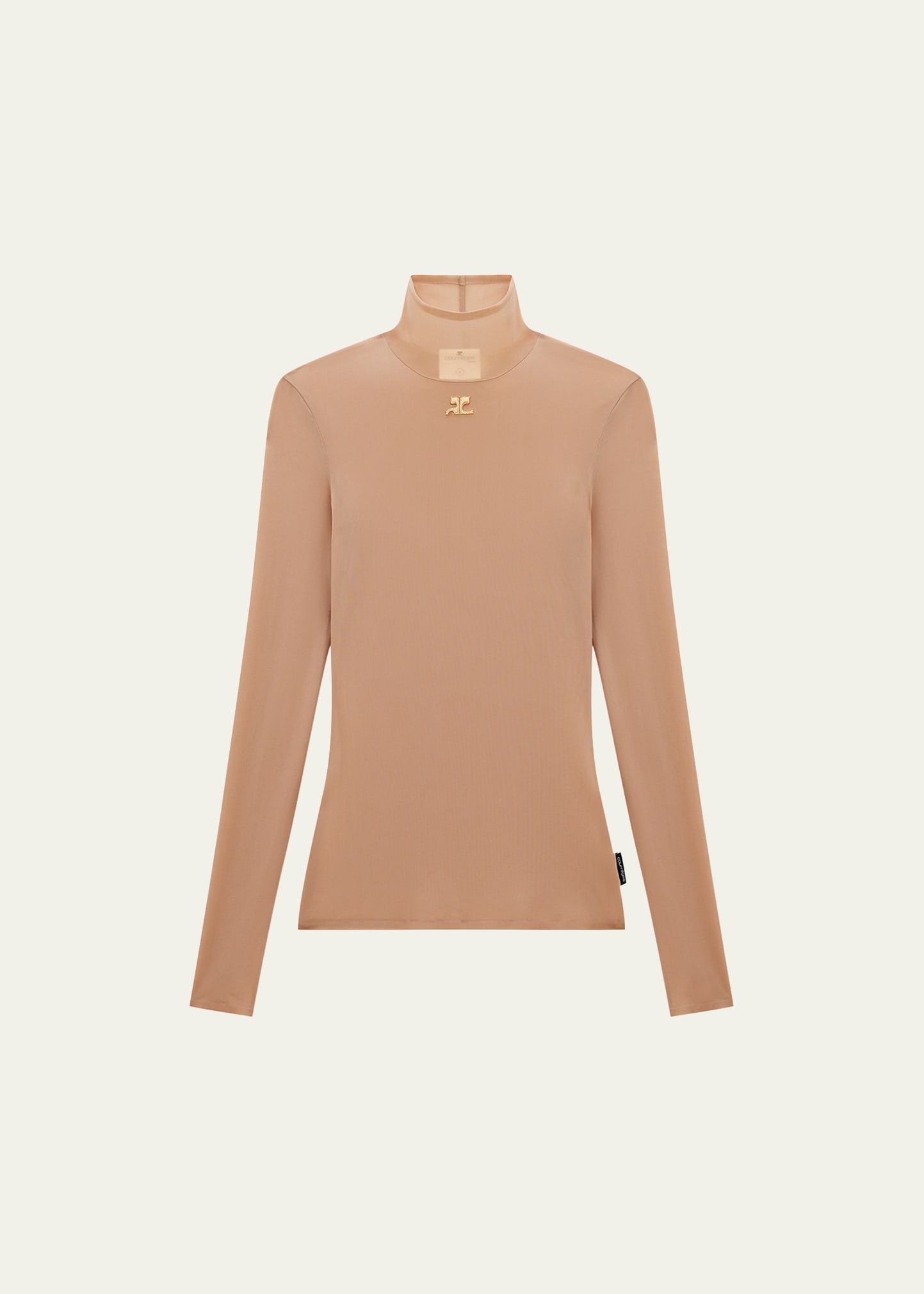 Courreges jersey top featuring logo hardware Mock neckline Long sleeves Second-skin fit Back zip Polyester/elastane Made in Italy