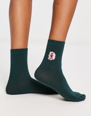Socks & Tights by Monki Treats for your top drawer Ribbed cuffs Festive embroidery Mid cut