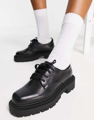 Shoes by Monki Add-to-bag material Pull tab for easy entry Lace-up fastening Square toe Chunky sole Textured tread