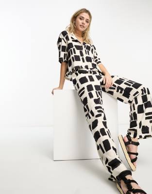 Pants & Leggings by Monki Part of a co-ord set Shirt sold separately High rise Elasticized waistband Side pockets Wide leg