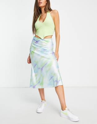 Midi skirt by Monki Love at first scroll All-over tie-dye print High rise Zip-side closure Slim fit