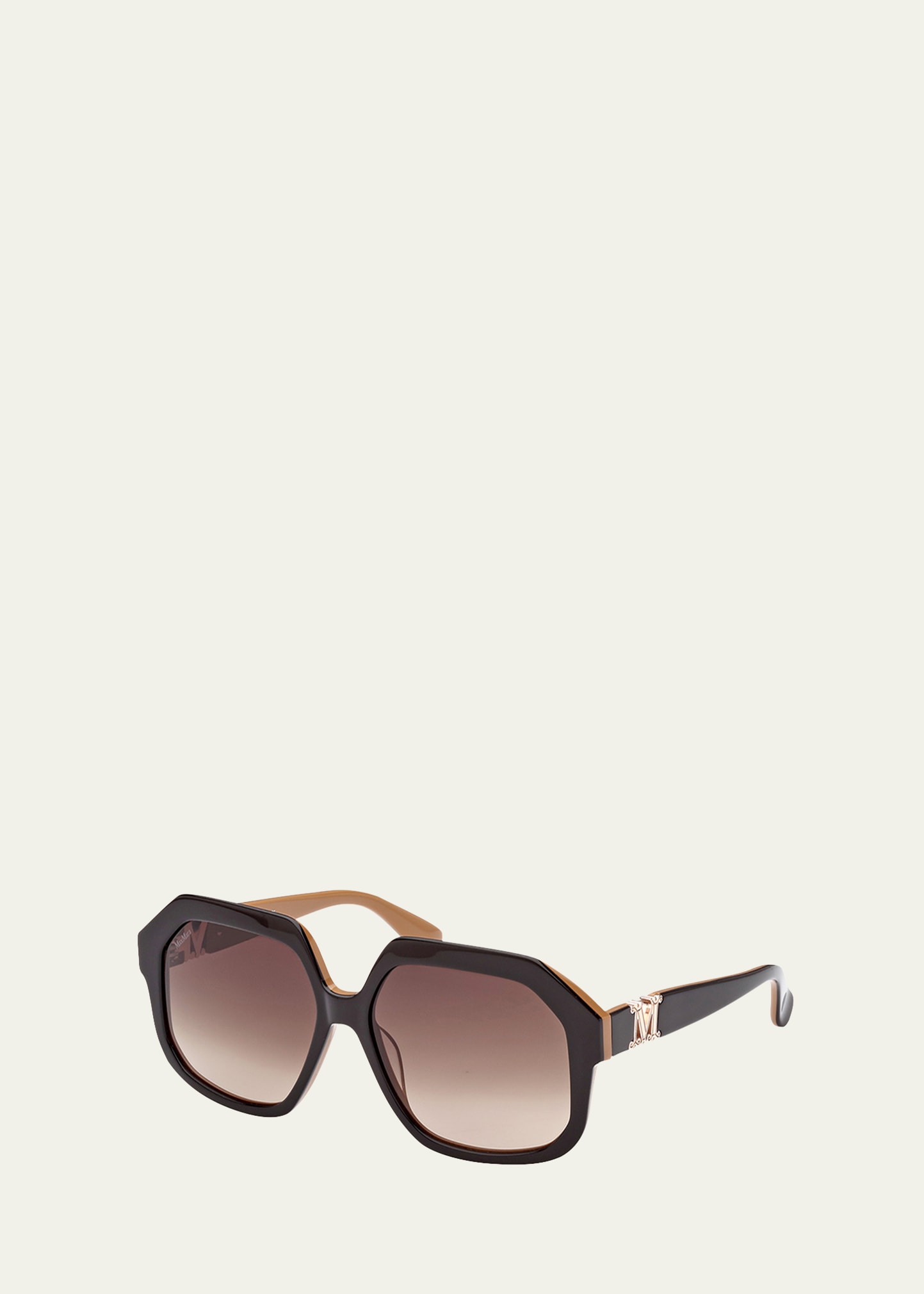 Max Mara butterfly sunglasses in acetate Lens/bridge/temple (in mm): 57 -15 -140 Gradient lenses; logo on corner Saddle nose bridge Monogram accent on temples Thin, tapered arms 100% UVA/UVB protection Imported