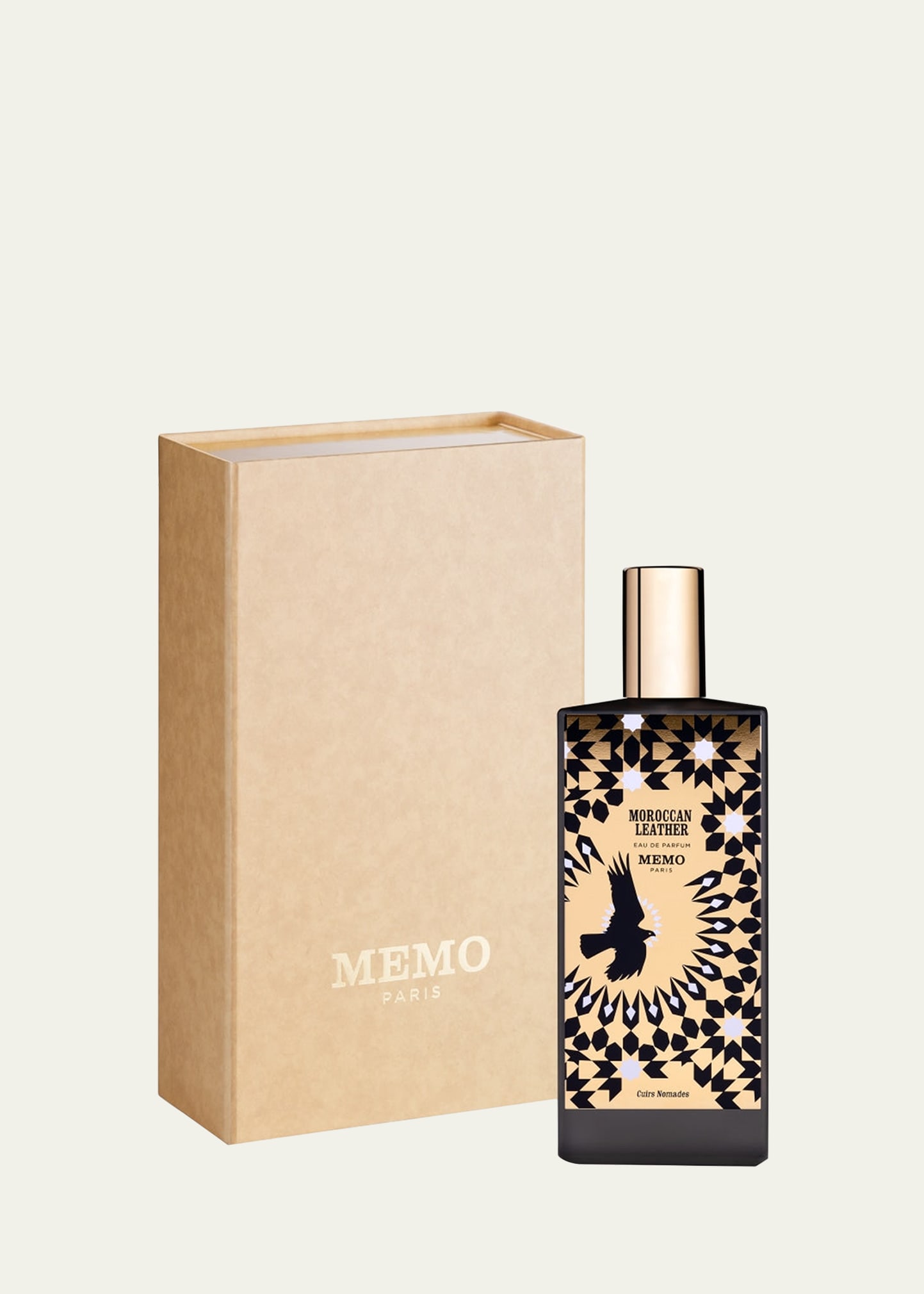 Memo Paris Moroccan Leather, 2.5 oz. Moroccan Leather is the newest member of the leather collection from Memo Paris. Inspired by the indigo city of Chefchaouen in Morocco, this leather scent is created with the floral character of Iris fields and the fresh breeze of orange trees blossoming, with the warm touch of Tonka bean and Musk, blended with Leather accord to create a uniquely bright and deep fragrance. Slender blue palm trees sway in the musky wind, as oil of vetiver stirs under a cano.