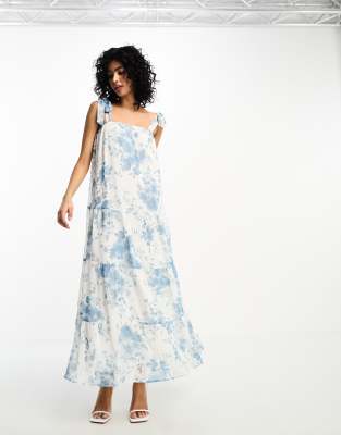 Dress by NA-KD Collaboration with influencer Julie Ferreri Tiered design Square neck Tie straps Regular fit