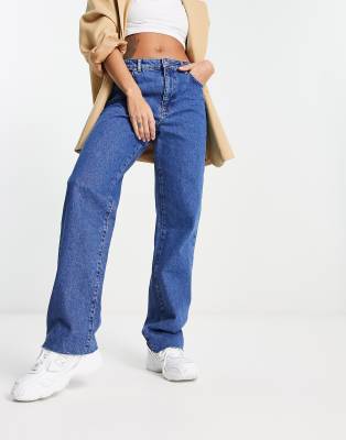 Jeans by NA-KD Collaboration with influencer Rianne Meijer Straight fit Low rise Belt loops Functional pockets Raw-cut hem