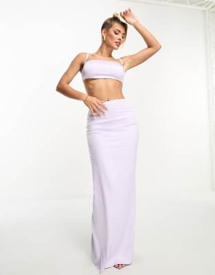 Naked Wardrobe satin maxi skirt in lilac - part of a set-Purple