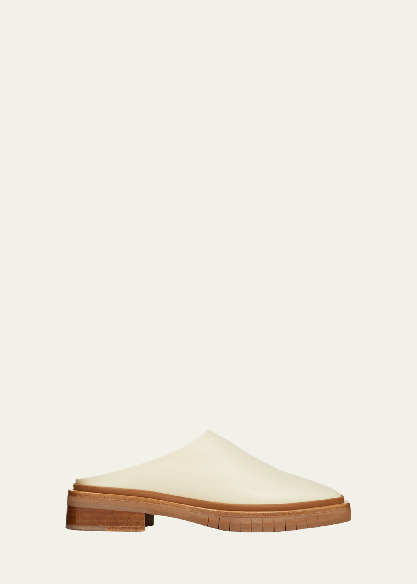 Clergerie Paris napa leather low mules 1.38 in / 35 mm block heel; 0.75 in / 20 mm platform Round toe Slide style Leather/Rubber outsole Made in France