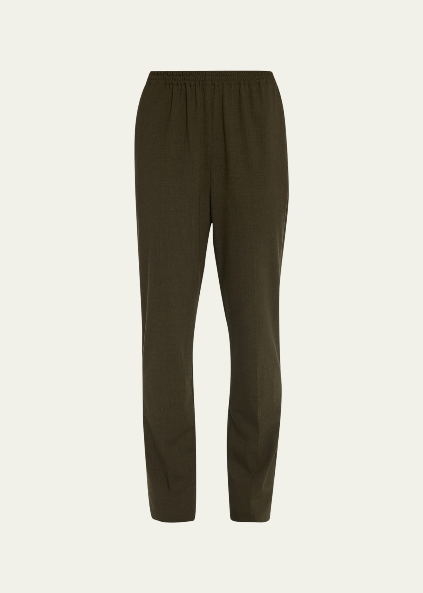 Eskandar narrow trousers High rise Elastic waistband Side slip pockets Full length Pull-on style Wool/elastane Made in Poland