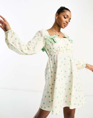 Dresses by Neon Rose All other dresses can go home Polka-dot print Square neck Bow details Regular fit